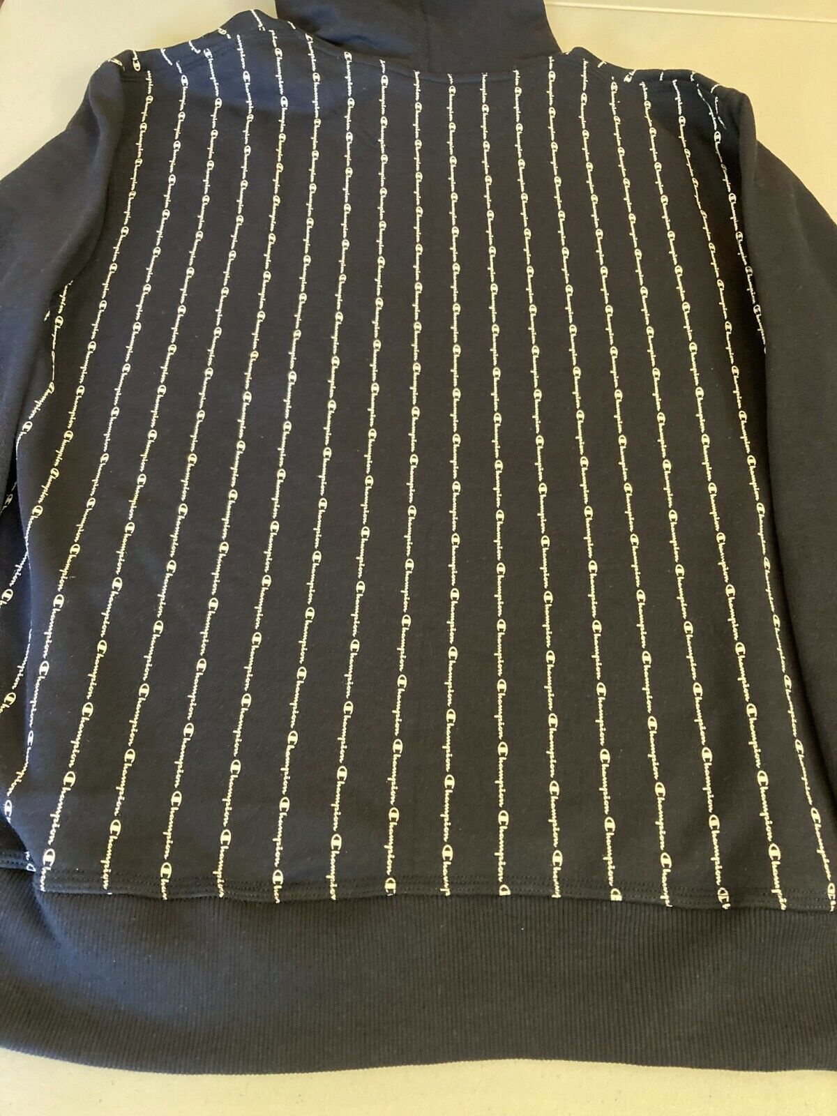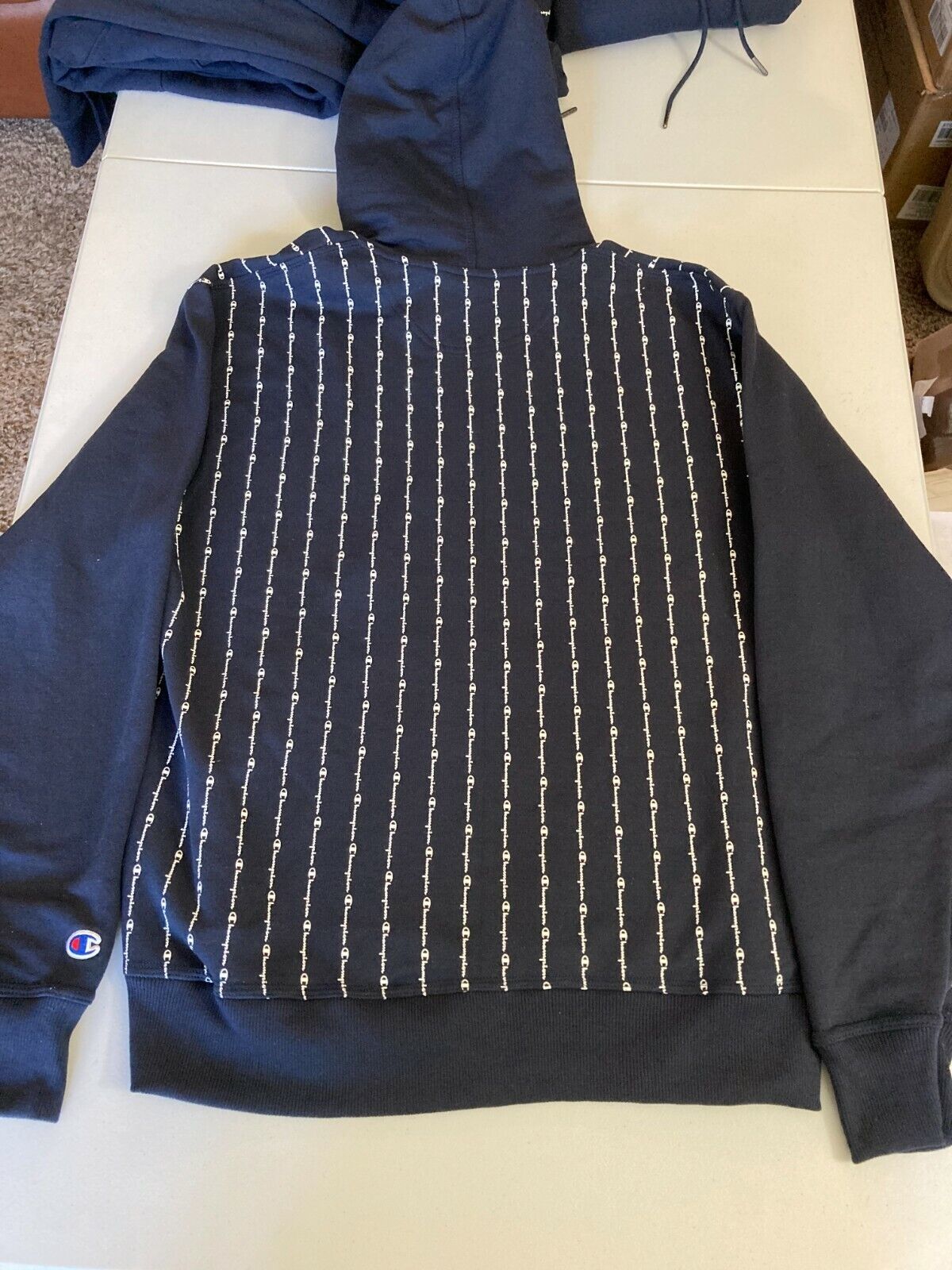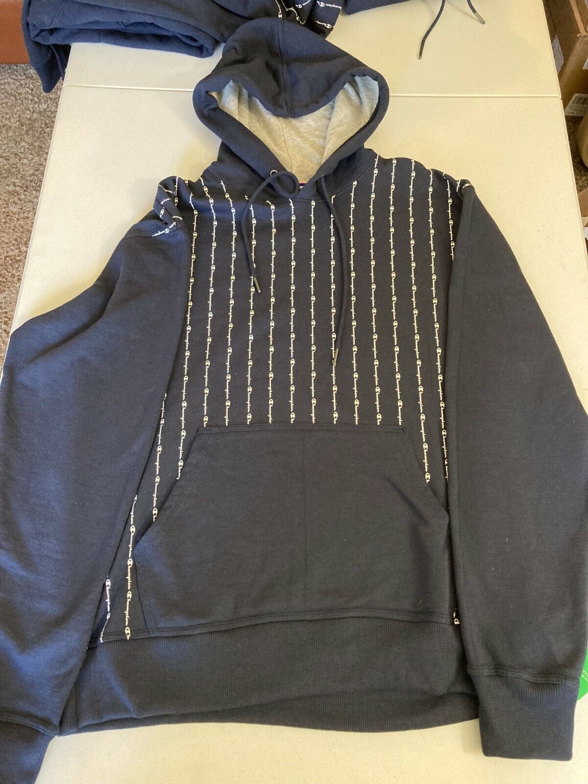 Champion Powerblend Hoodie, Allover Logo Navy Pinstripe Vertical in Navy-2XL