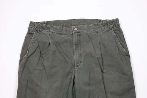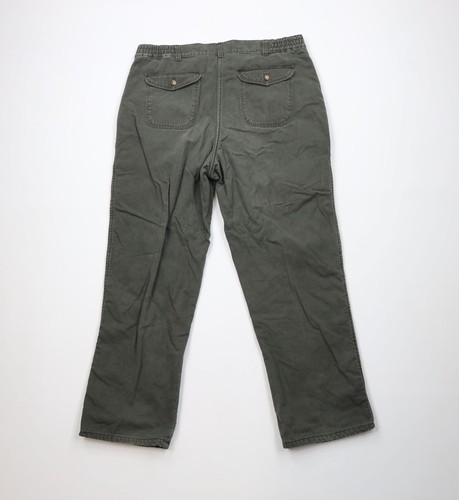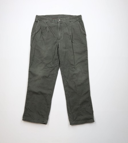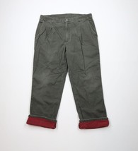 Vtg 90s LL Bean Mens 36x29 Faded Flannel Lined Canvas Wide Leg Pants Green USA