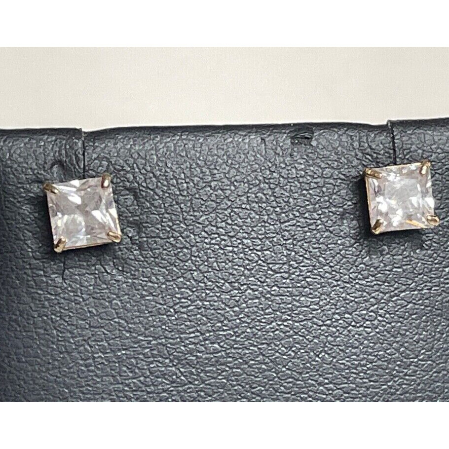 SIZE:APPROX.5 x 5 mm.THE EARRINGS FEATURE PRINCESS CUT CRYSTAL CLEAR CZ'S WITH TOTAL ESTIMATED WEIGHT 1.25 CARAT.GROSS WEIGHT:0.7 GRAMS.