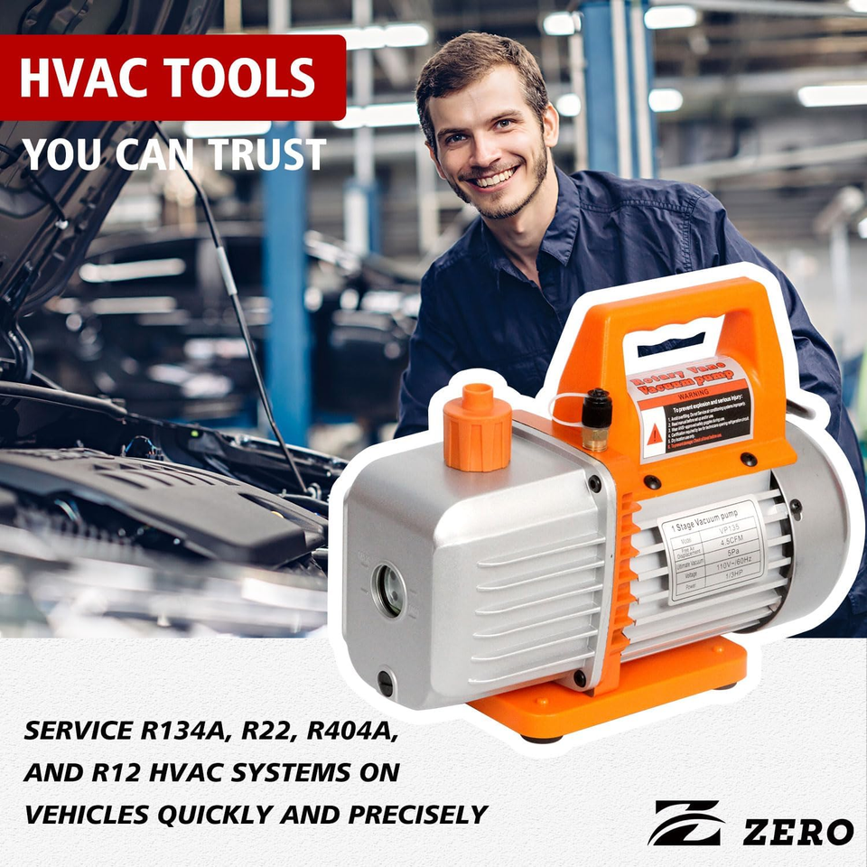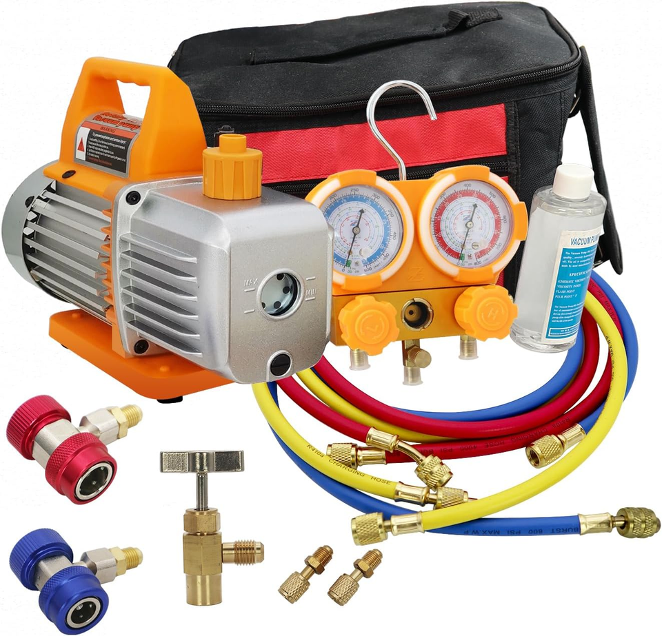 Z 110V 1/4HP 2 CFM AC Vacuum Pump Kit and AC Gauge Set, Single Stage Rotary Vane
