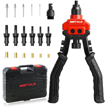 Professional Rivet Gun Kit with 5 Rivet Heads and 6 Metric & SAE Mandrels, Hand