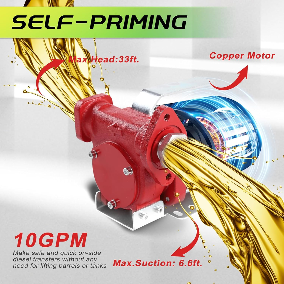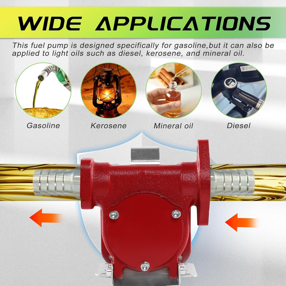 ? SUITABLE FOR: This oil pump is convenient, reliable, easy to operate and simple to maintain. Suitable for gasoline, liquefied petroleum gas, diesel, kerosene, mineral oil and more. The pump with sensitive switch for precise control, electric power supply makes it very fast and convenient.