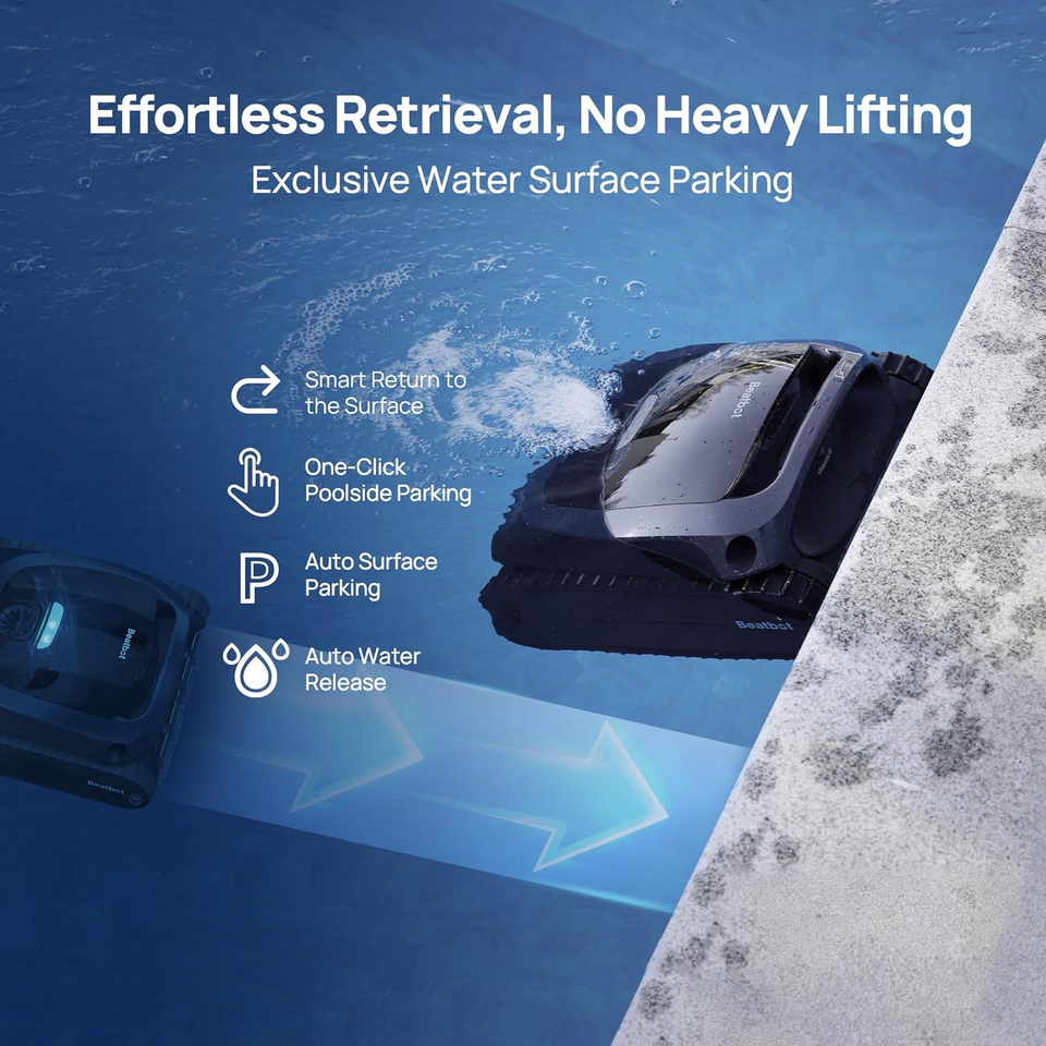 Effortless Auto Parking ? Surfaces automatically after cleaning or when the battery is low. SmartDrain releases water to reduce weight for easy retrieval. One-tap surfacing via the app.