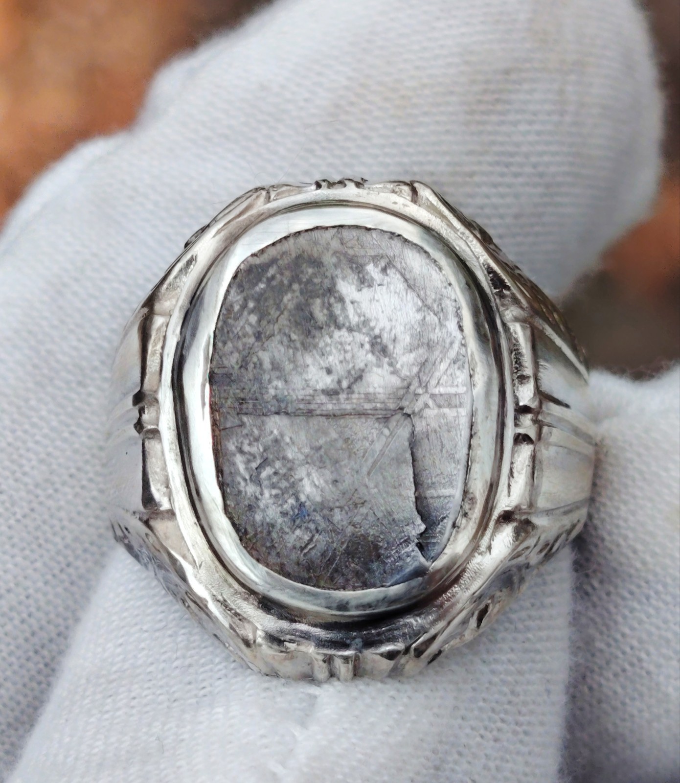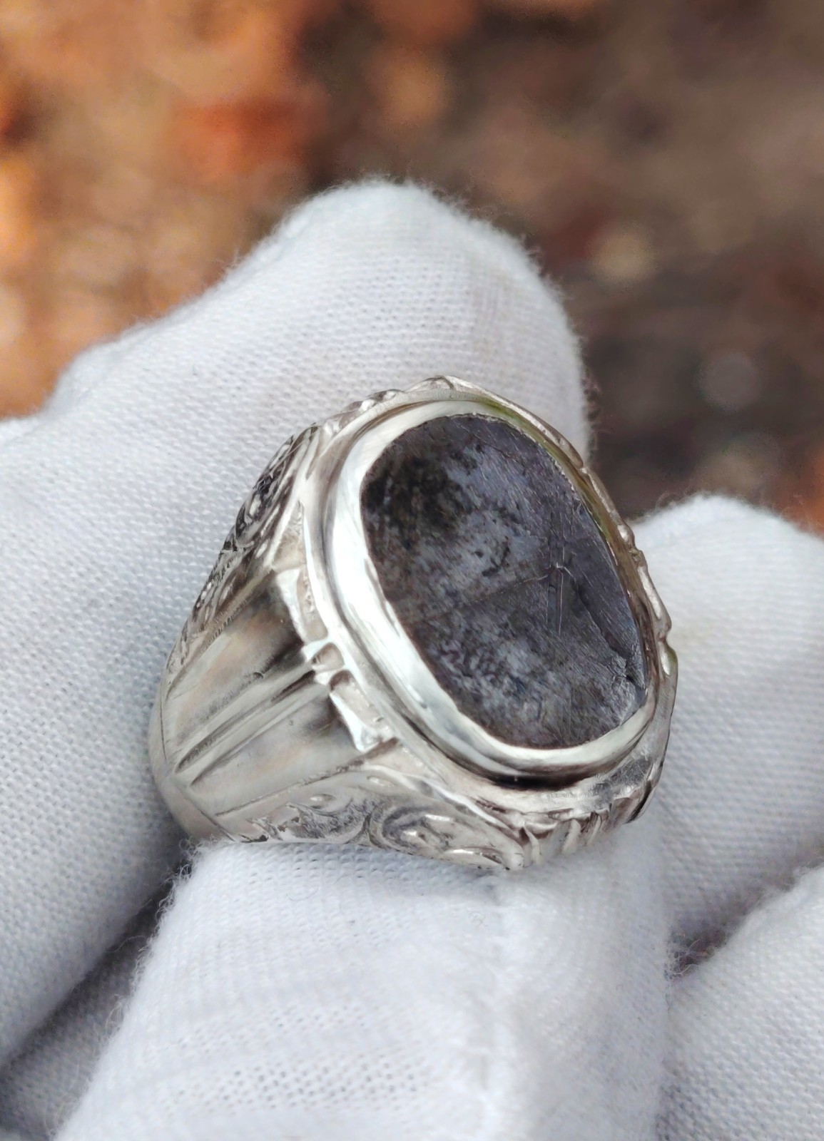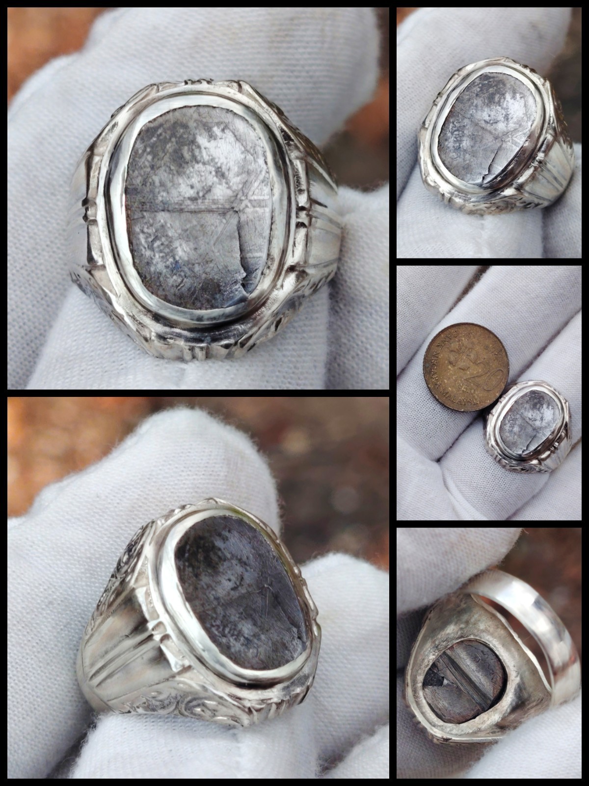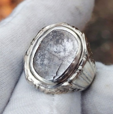 Natural Iron Meteorite Muonionalusta silver 925 ring