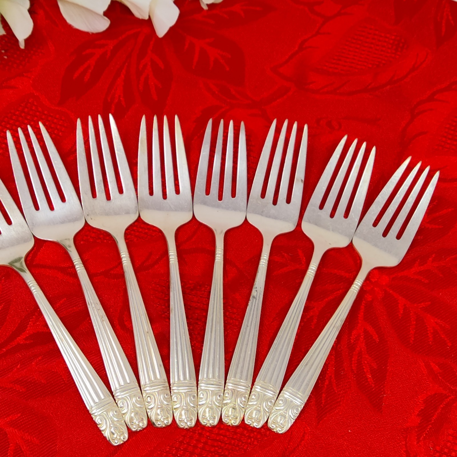 8X SF National Silver Princess Royal Silverplate Salad Forks