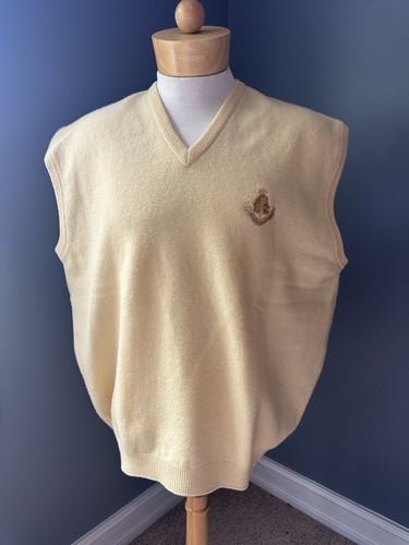 CARNOUSTIE GOLF LINKS SCOTLAND 100% Lambswool Vest. Peter Scott Mens L. Yellow