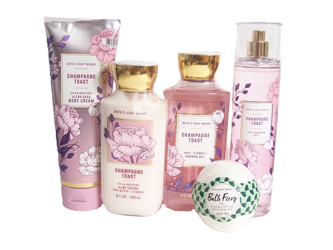 5 Piece Bath Body Works Champagne Toast Fragrance Gift Set - Body Lotion, Shower Gel, Fragrance Mist, Body Cream Eucalyptus Spearmint Bath Fizzy