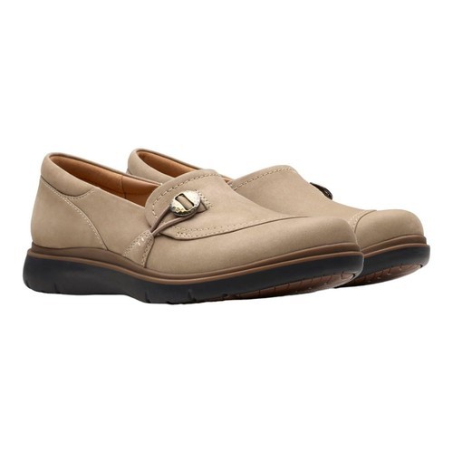 Clarks Women's Certina Ease Slip On Loafer, Pebble Nubuck Size 6 Wide