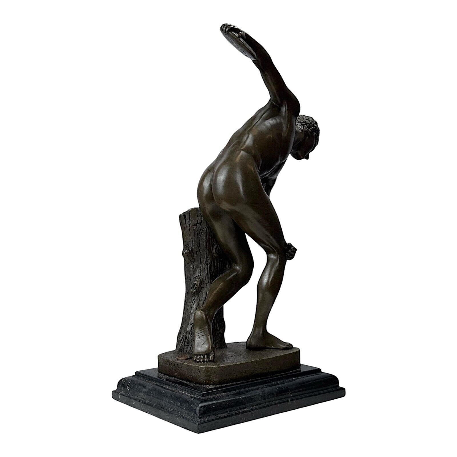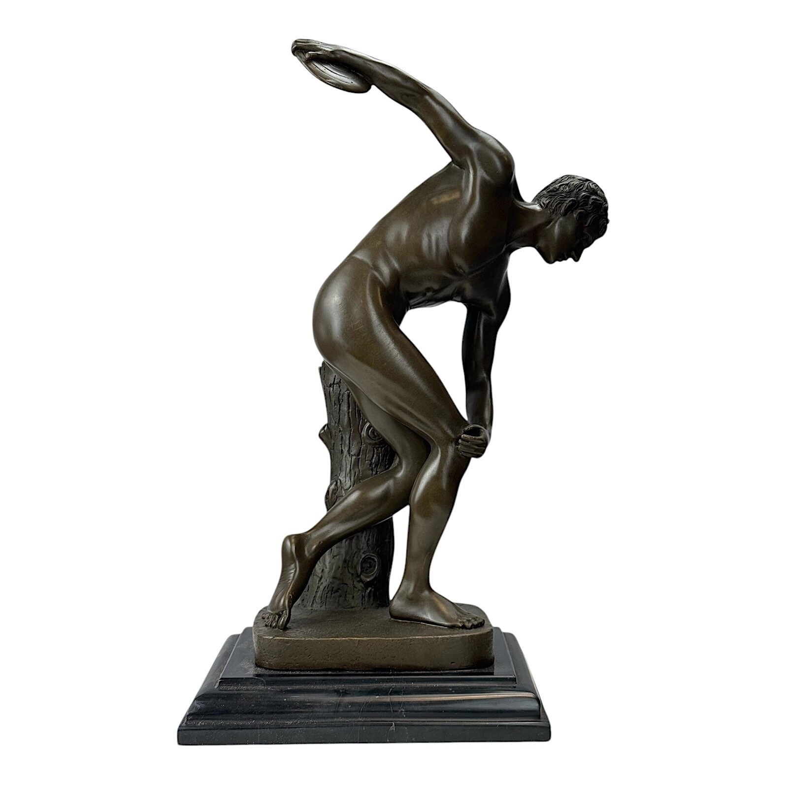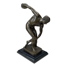 Discobolus Discus Thrower of Myron Real Bronze Sculpture on Marble Base 14.96 in