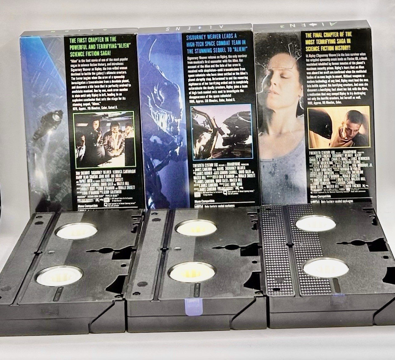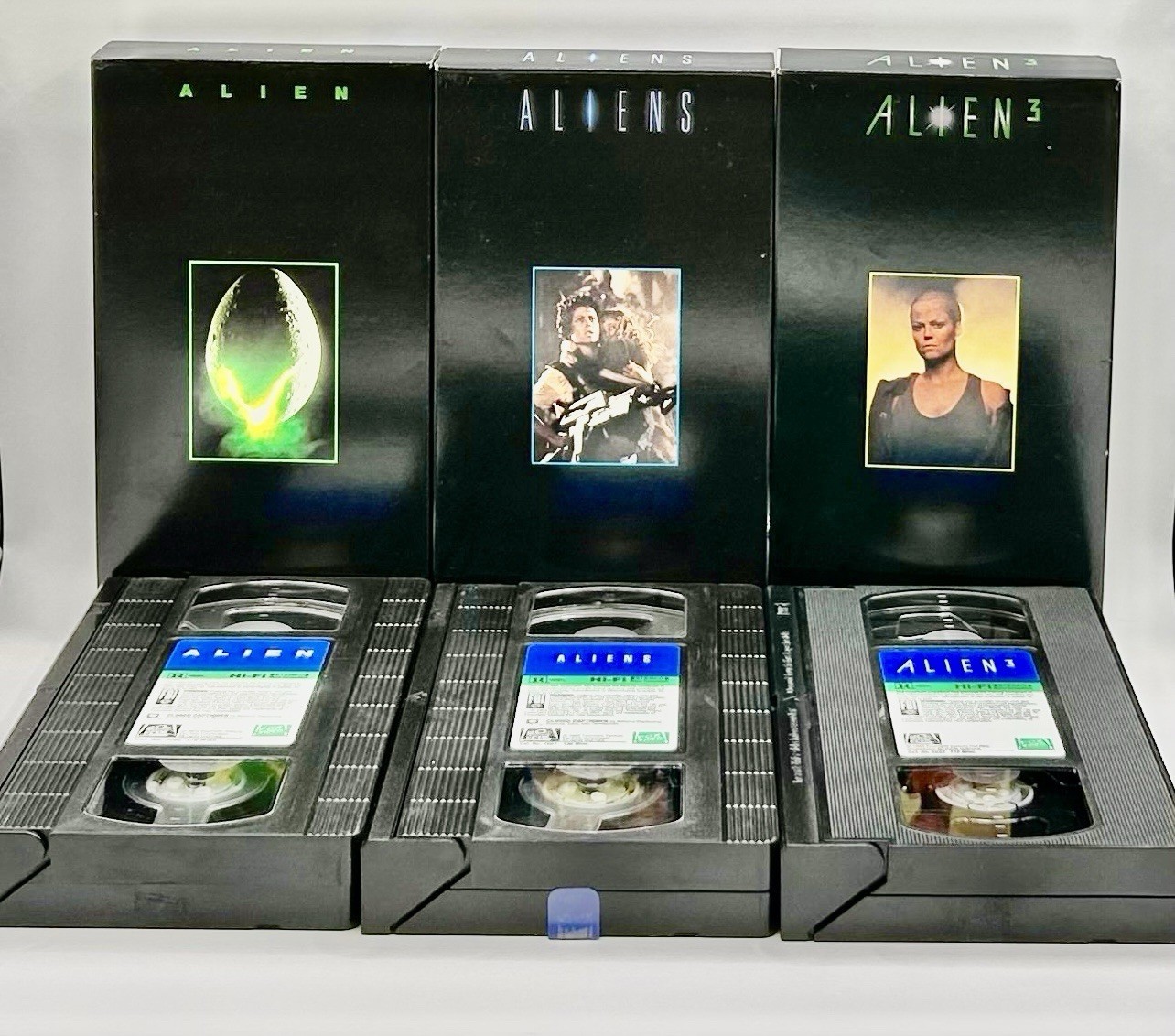 GOOD: The item is used but in good condition. It has minor damage to the case, including scuffs. The order includes the VHS tapes of Alien, Aliens, and Alien3 with their individual VHS boxes encased in a box.