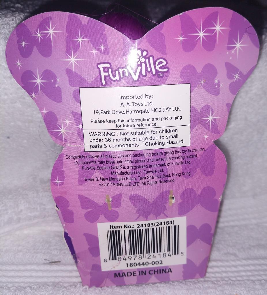 Funville Sparkle Girlz with Green Eyes & Purple Hair 4.5"H Mini Doll New