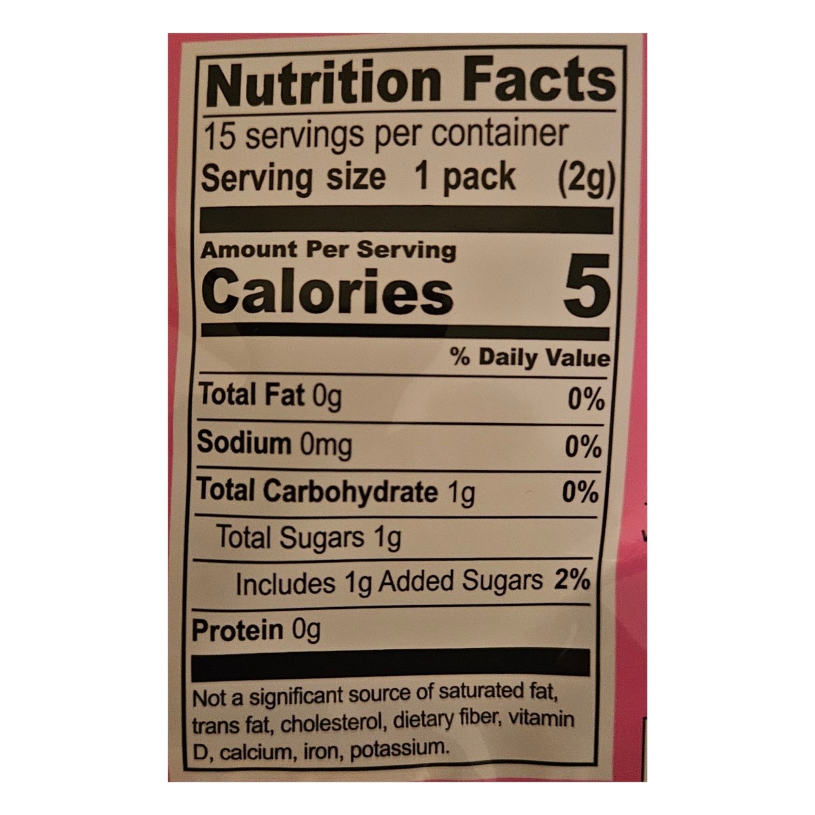Ingredients: Sugar, isomalto-oligosaccharide, maltose syrup, sorbitol, xylitol, anhydrous glucose, anhydrous citric acid, malic acid, artificial flavorings, carbon dioxide, cooling agent, artificial colors (FD C Red 40).
