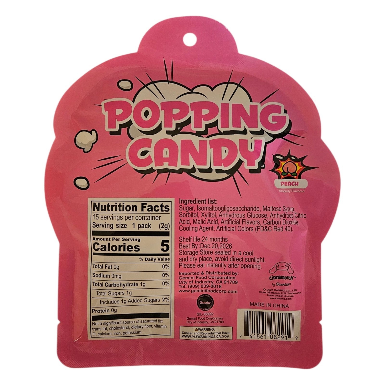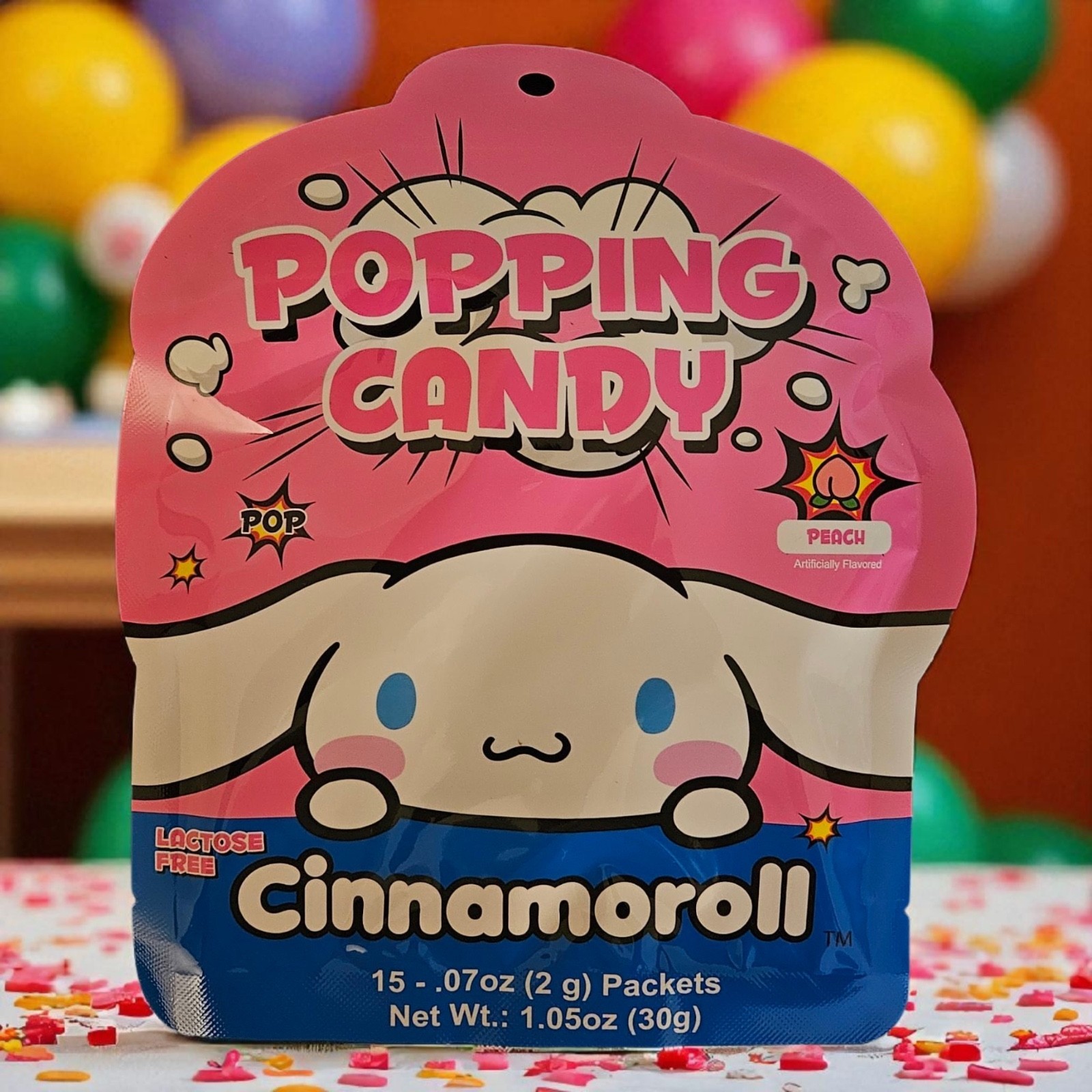 Prepare to delight your senses with Cinnamoroll by Sanrio Popping Candy in a delicious peach flavor! This popping candy offers a fun and unique way to enjoy sweets. It's the perfect treat for every Sanrio fan and candy lover! Each package contains a net weight of 1.05 oz (30g).