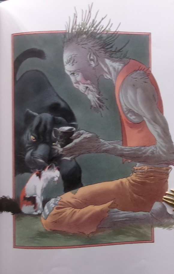 A lovely fantasy story featuring an animal loving and imitating orphan girl who lives with her Aunt near a forest, and after being snake bitten, is saved by cats who change her into a kitten--for a time.