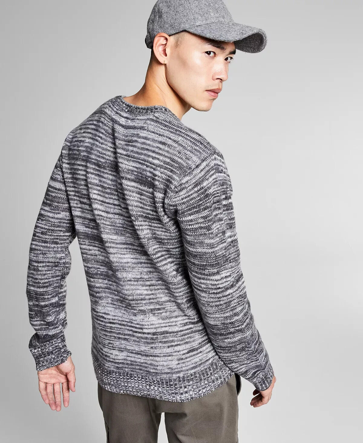 Marled styling; ribbed-knit crewneck, cuffs and hem