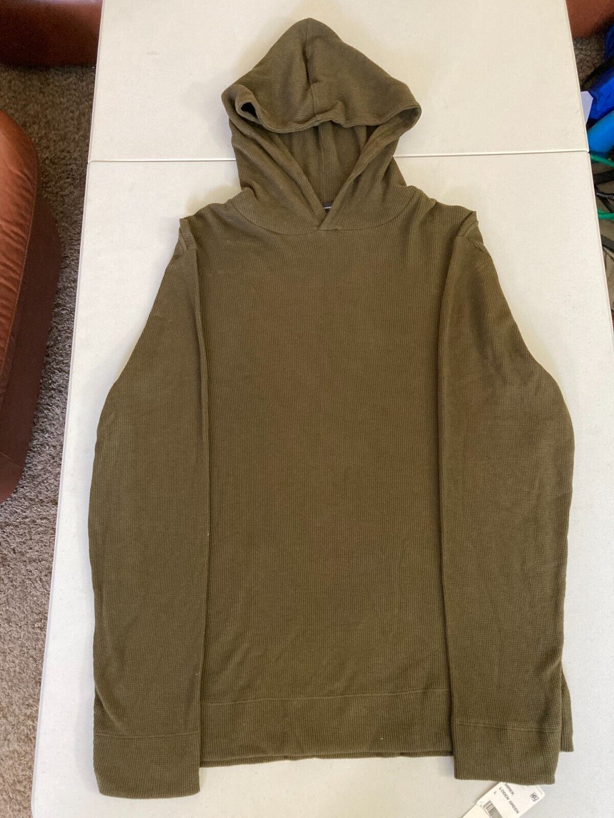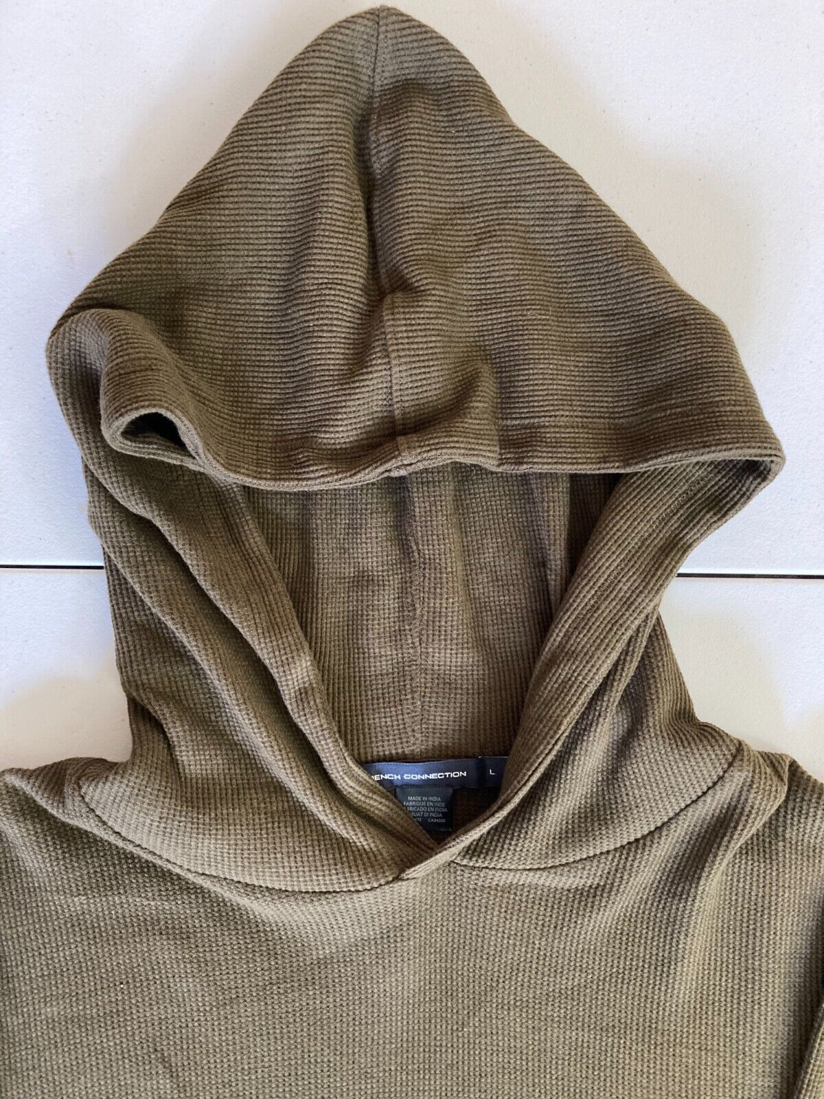 French Connection Cotton Waffle Knit Regular Fit Shirt Hoodie Loden Green-Large