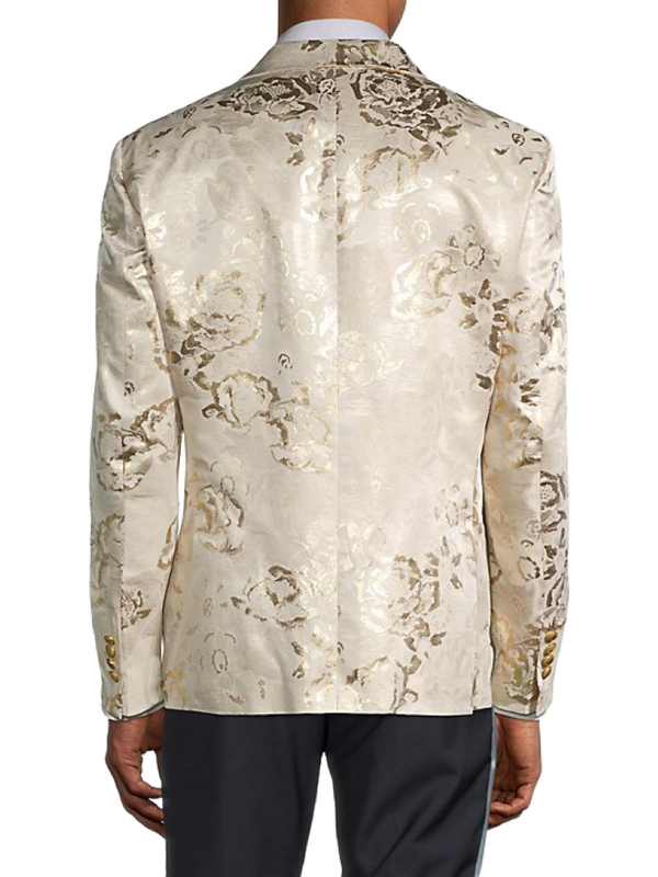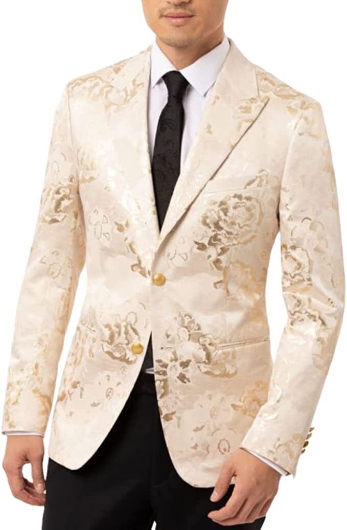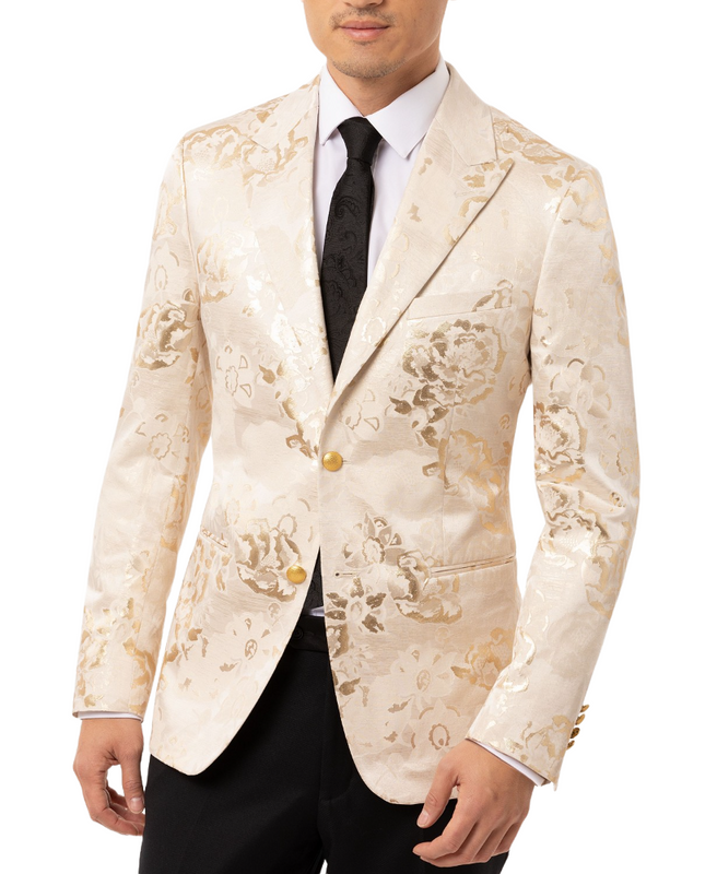 Tallia Men's Floral Jacquard Slim Fit Dinner Jacket in Gold-Size Small 32-34