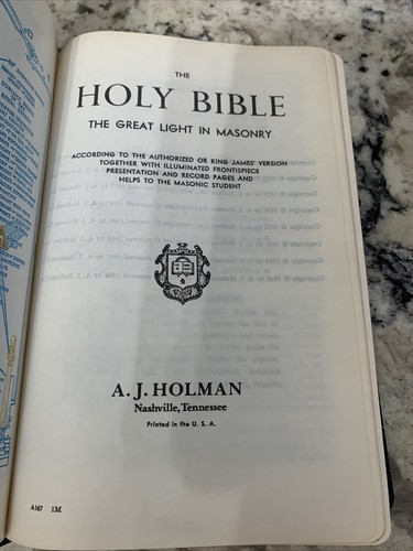 The Holy Bible-Great Light in Masonry ,Holman Genuine Leather,1942.