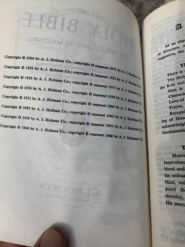 The Holy Bible Great Light in Masonry ,Holman Genuine Leather,1942 added to cart.