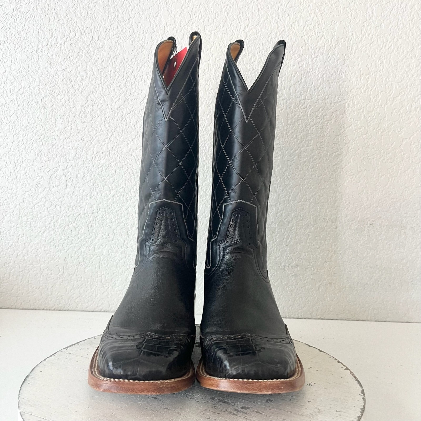 NEW Rod Patrick Mens Cowboy Boots 12.5A Black Caiman Western Square Toe Wing Tip