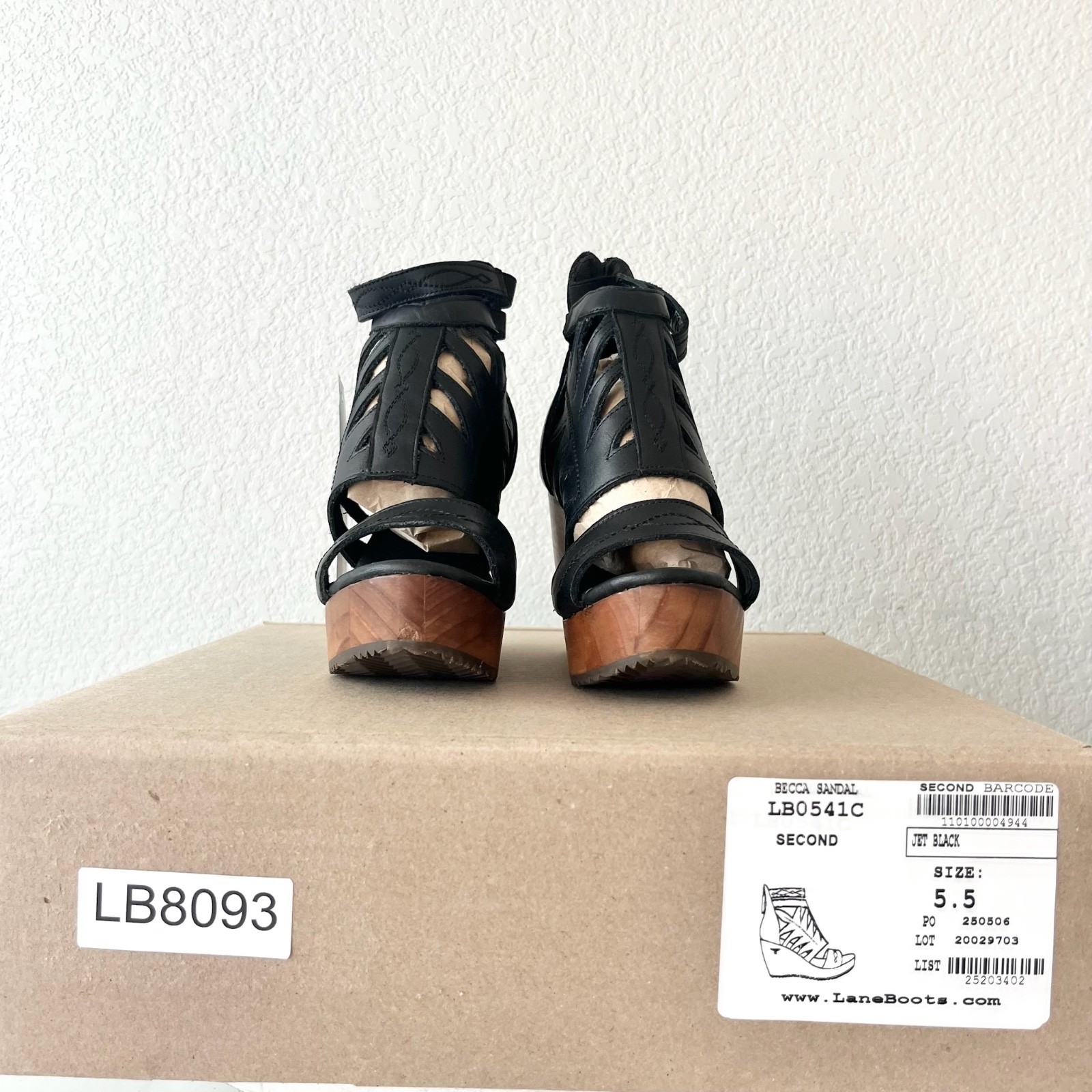 Lane Boots BECCA Womens Black Wedges 5.5 Western Sandals Cowgirl Leather Heels
