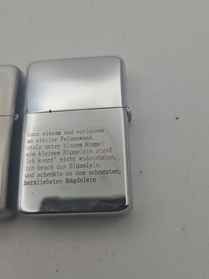 2. Luftwaffe ? Engraved with the word ?Luftwaffe? and eagle motif, alongside a shield with a flying bird emblem. Reverse side bears the same German poem as the first lighter.