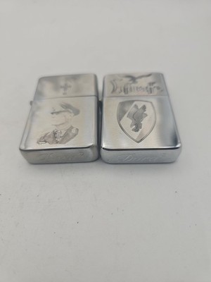 Set of two windproof flip-top lighters designed in the style of WWII-era military themes. These are modern collectible pieces intended for display and historical interest, not original wartime items.