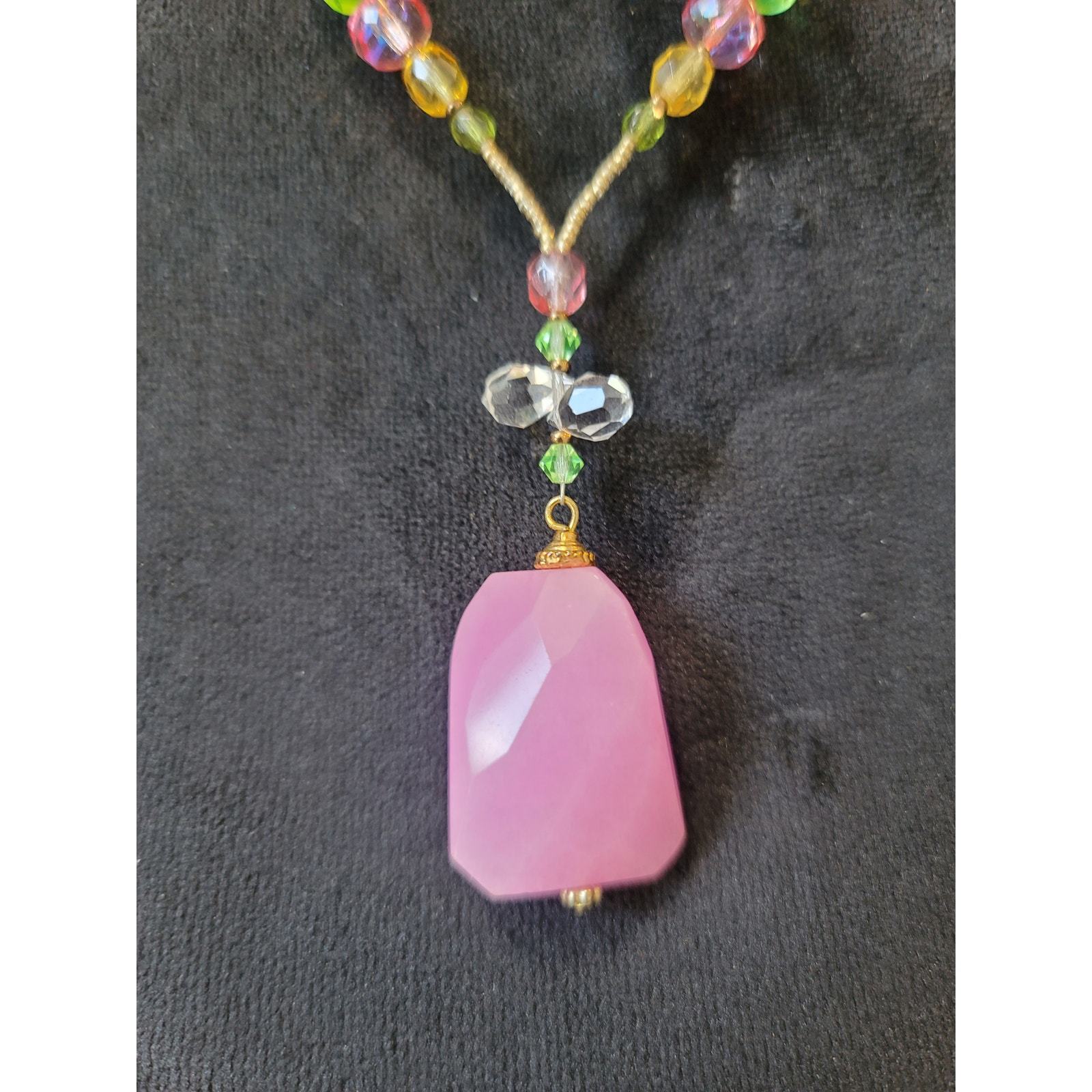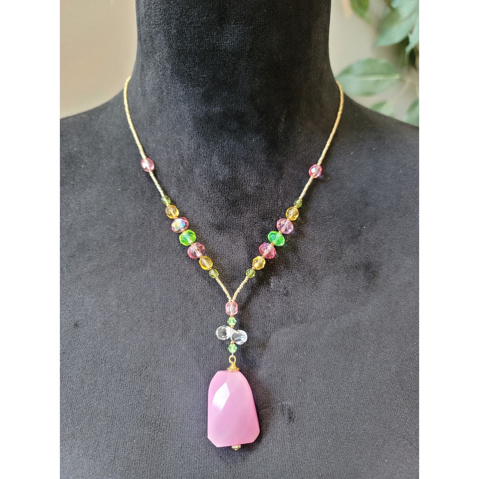 Women's Beaded Necklace With Pink Stone Pendant And Lobster Claw Lock Elegant