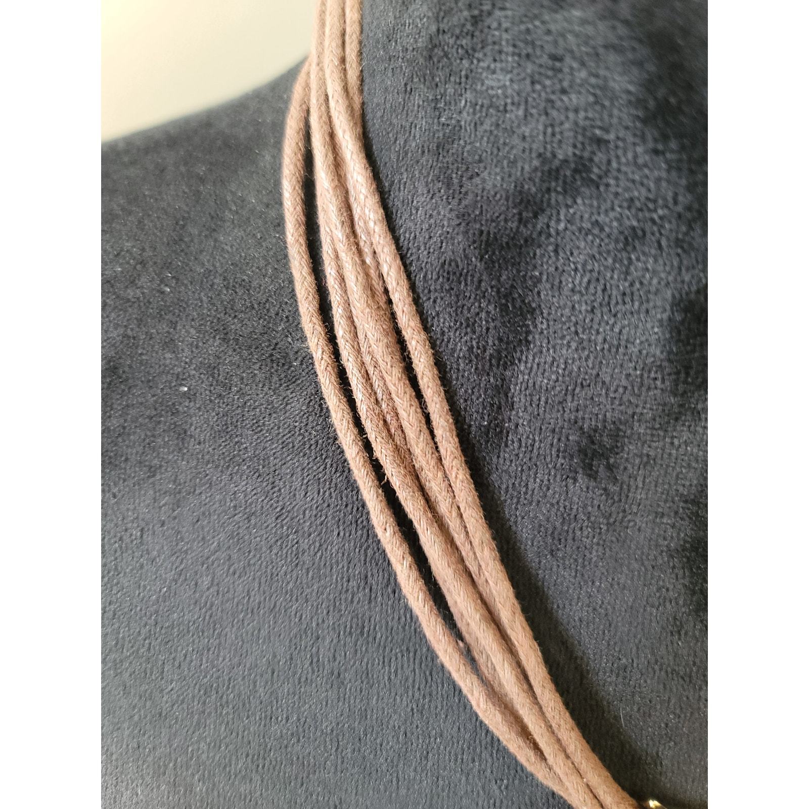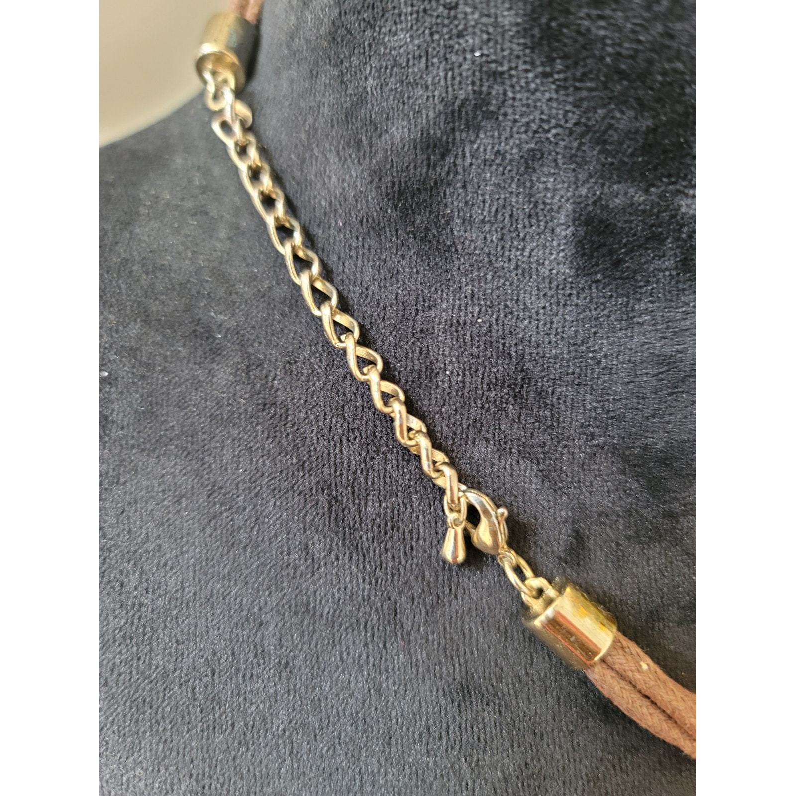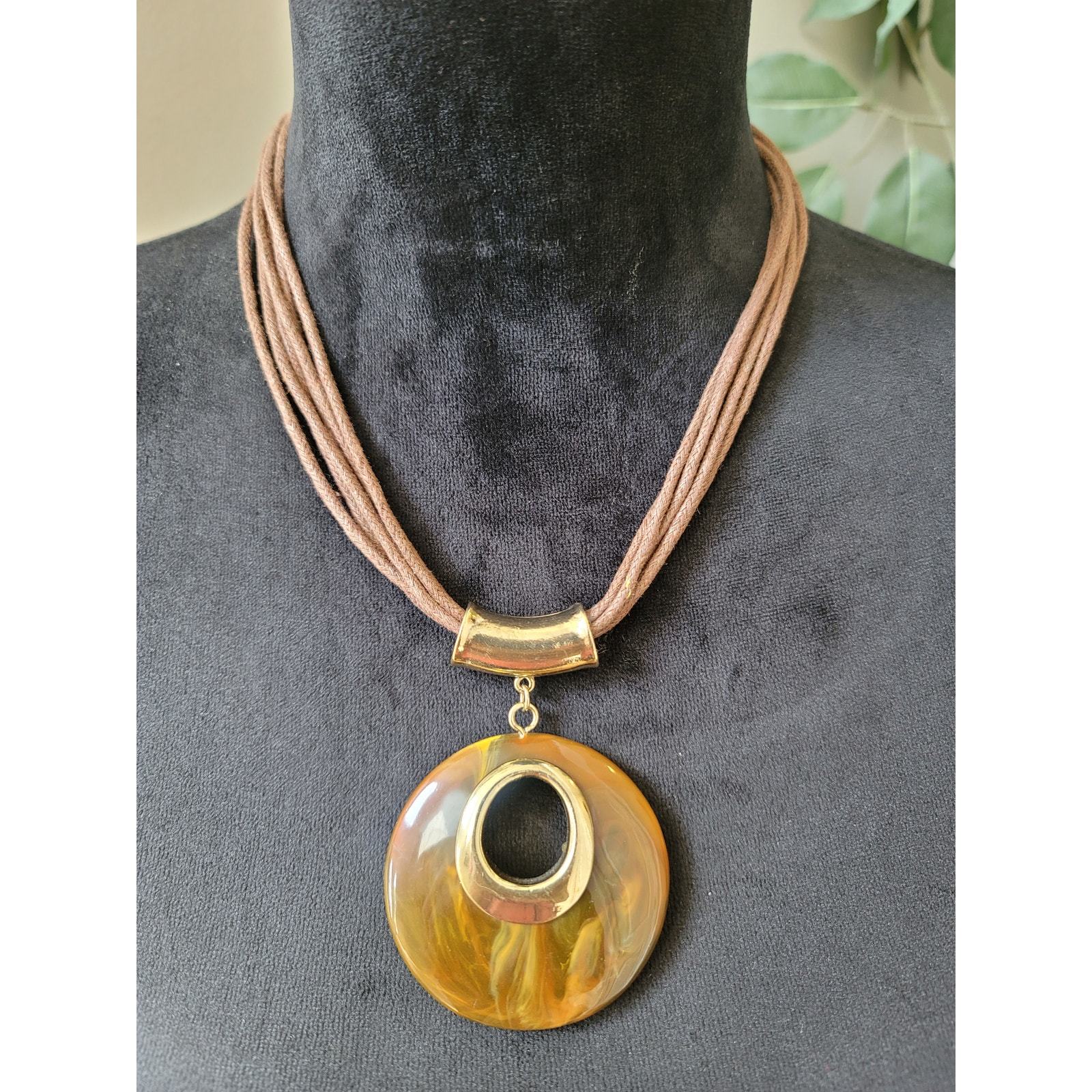 Women's Statement Brown Cord Necklace With Round Resin Pendant Lobster Clasp