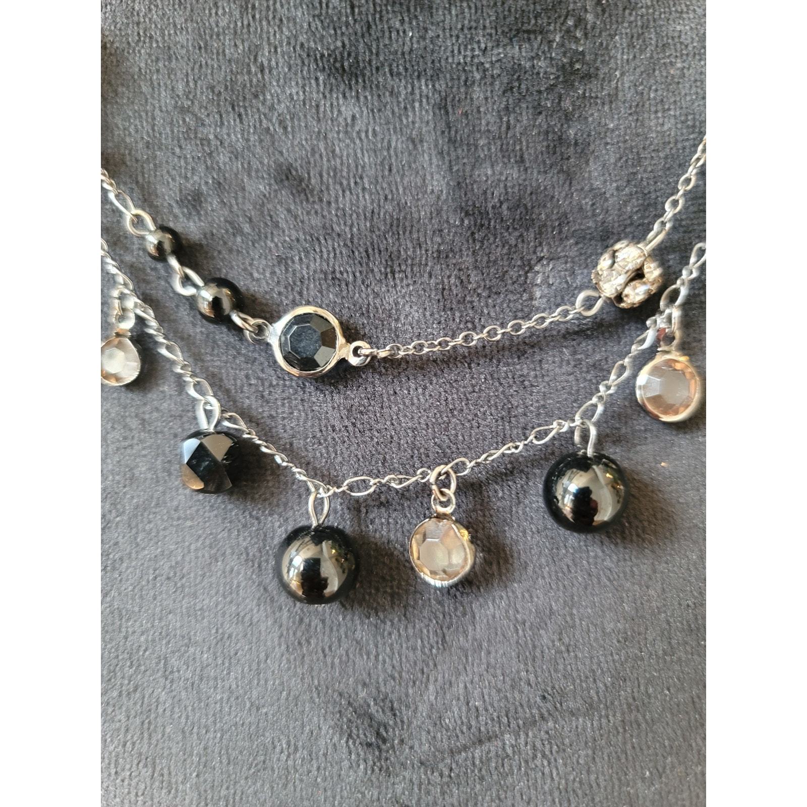 Express Black Beaded Layered Necklace With Lobster Clasp Elegant Statement Piece