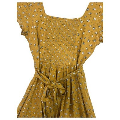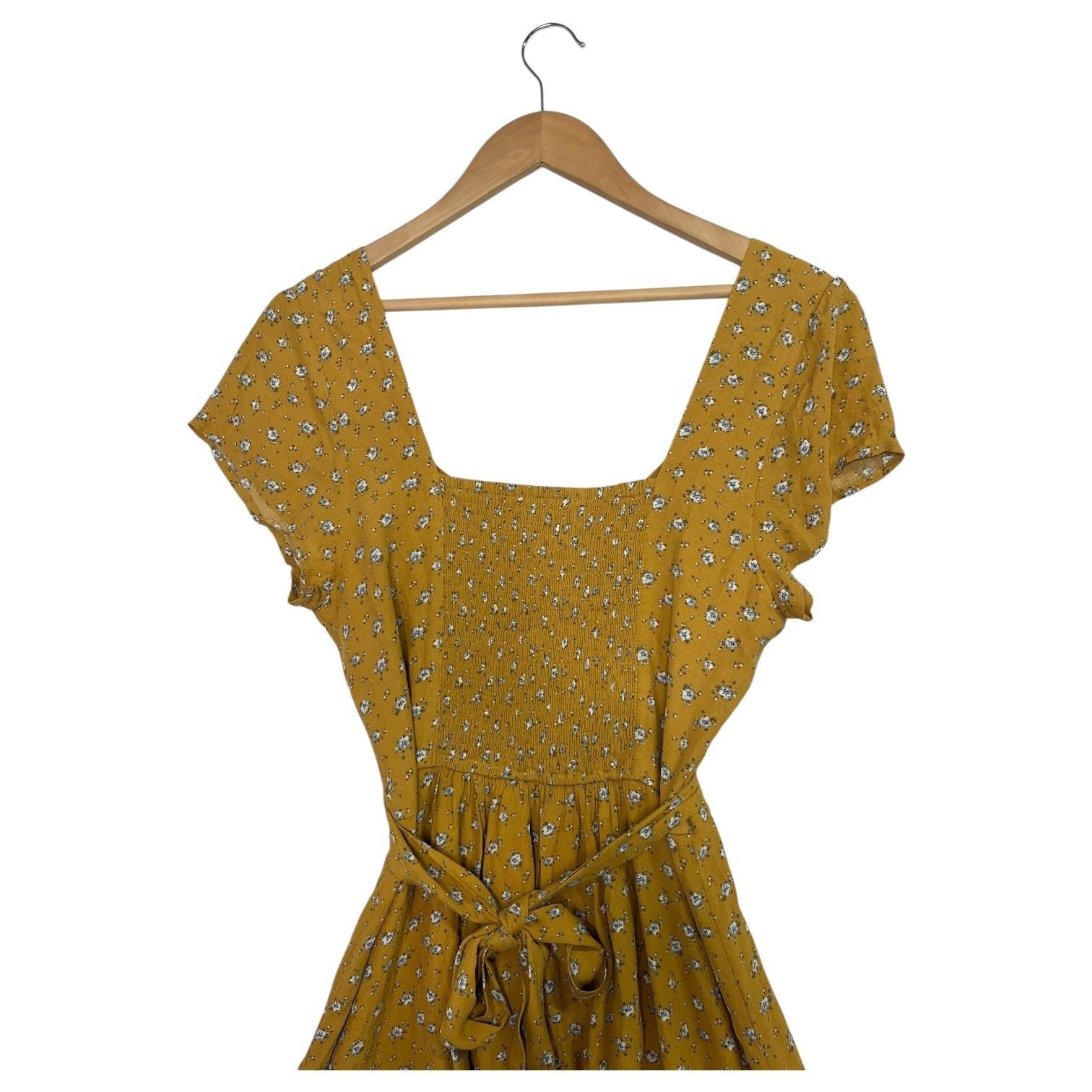 Abercrombie Fitch Dress Womens Medium Yellow Floral Short Sleeve Summer Boho