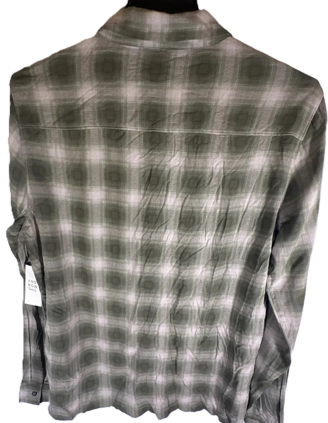 And Now This Mens Woven Regular-Fit Check Plaid Shirt in Olive-XL