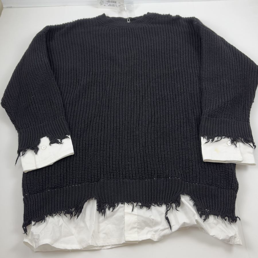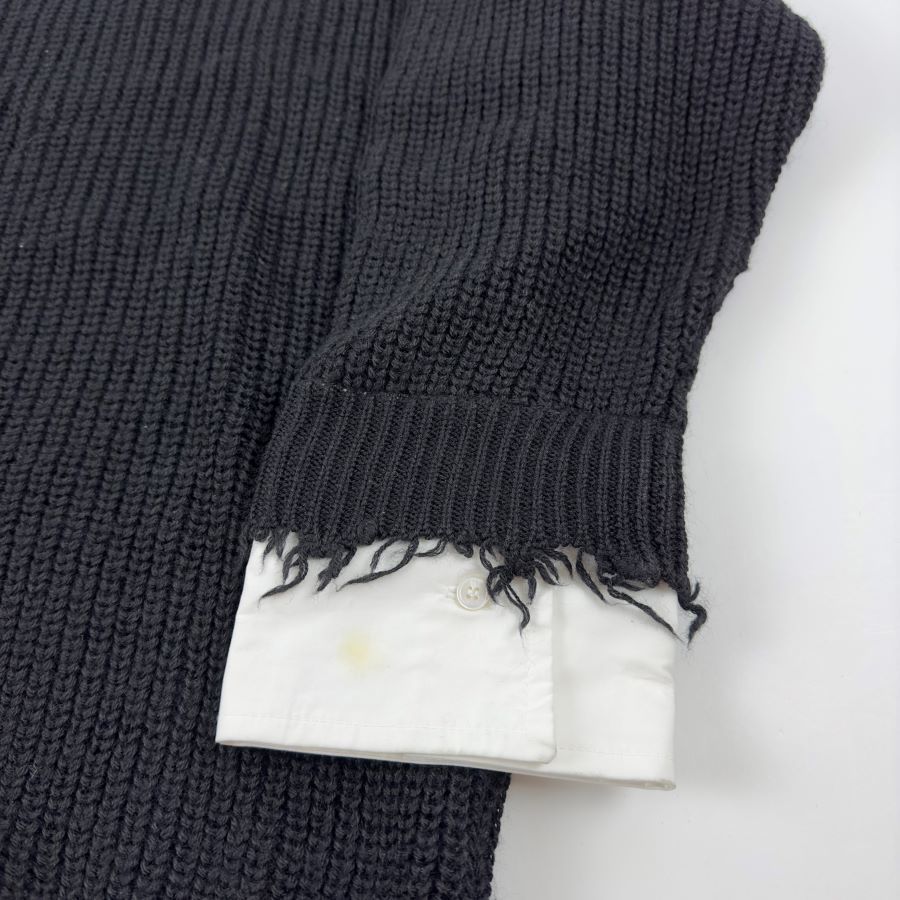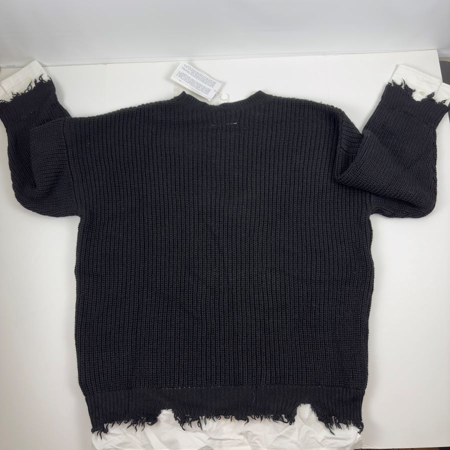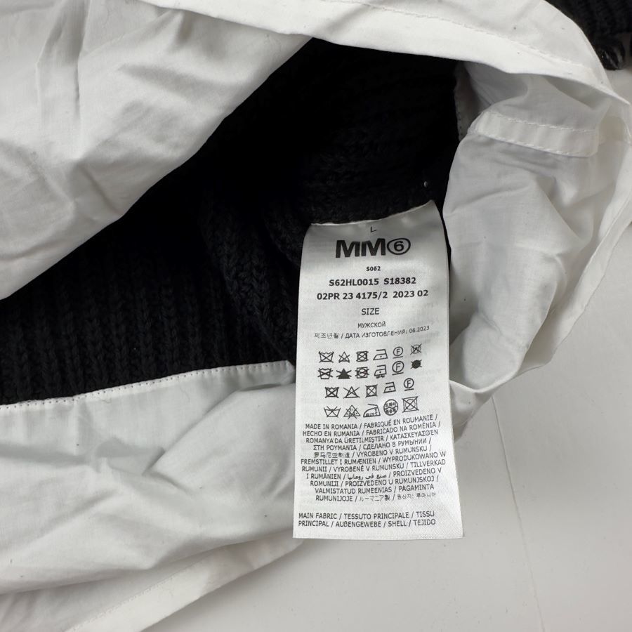 MM6 Maison Margiela Mens Wool Blend Layered Waffle-Knit Sweater Black-Large