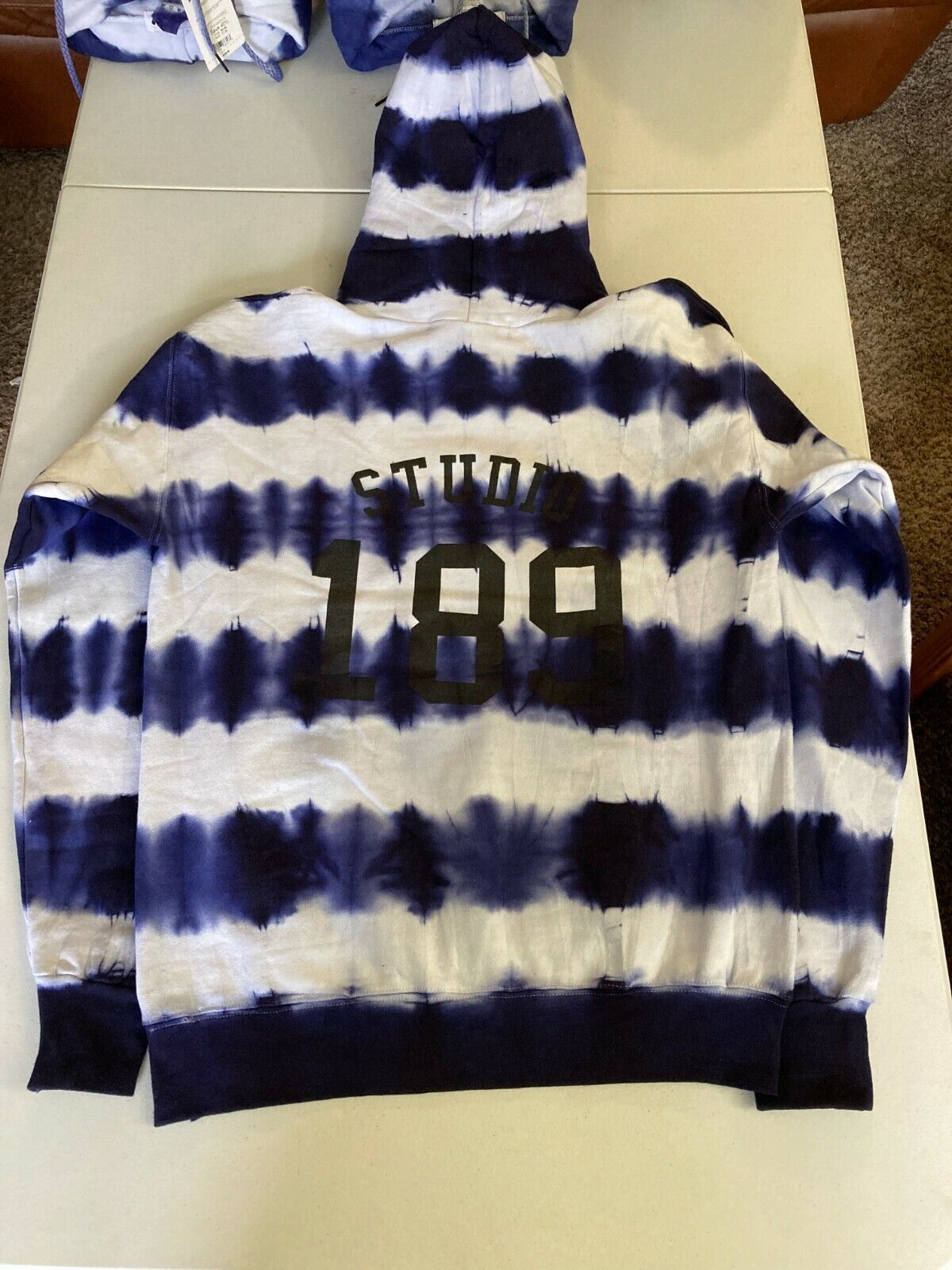 Are you looking for a standout hoodie? Check this offer out! Brand New Authentic, Studio 189 Men's Mizuho Cotton Blend Hand Batik Hoodie in Navy/White. Original retail $125. Act now! Stock up now while the price is right. Why pay full retail! Check out my line up of pants to go with your new shirt.