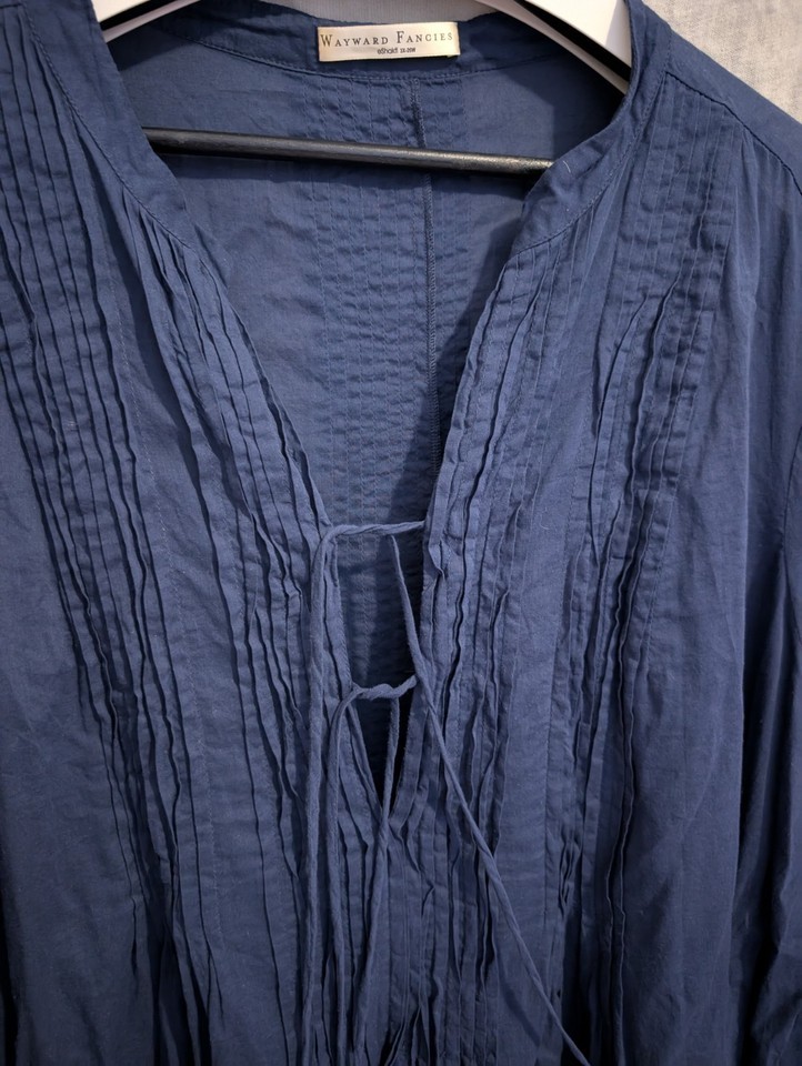 Wayward Fancies eShakti 3X 26W Midi Dress Navy Blue Pockets Pintuck Sleeve Vneck