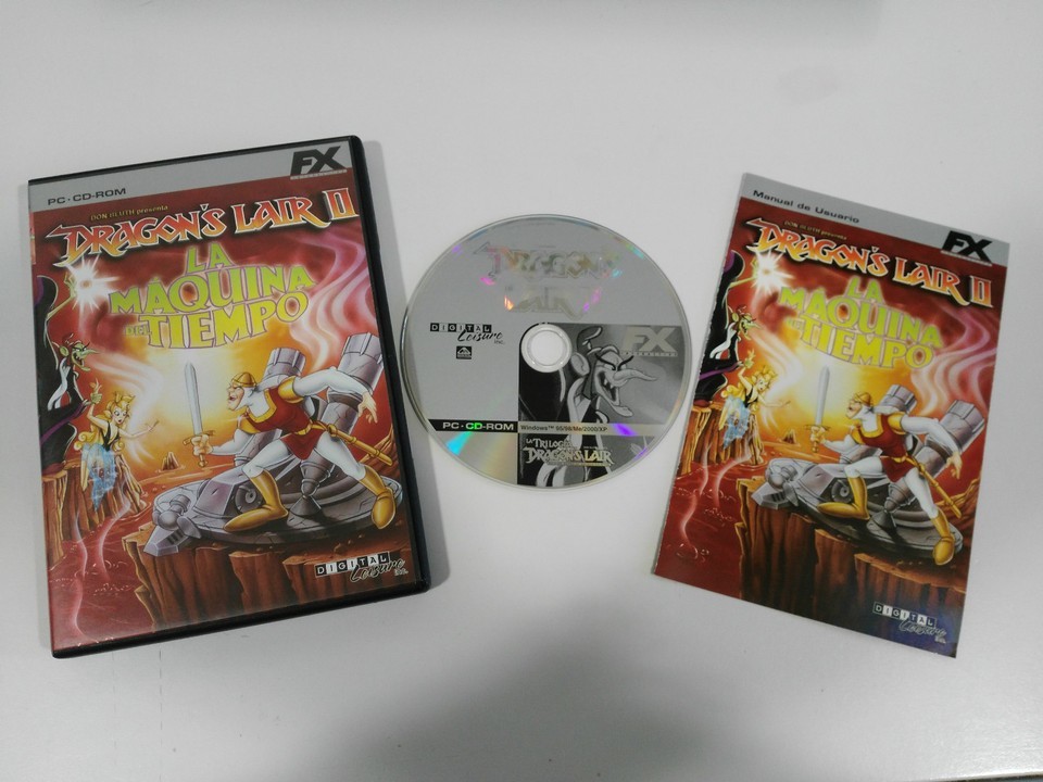 Dragon's Lair II, La Maquina del Tiempo, FX Interactive, juego PC, CD-ROM, aventura animada, Don Bluth, videojuego clasico, Dirk el Intrepido, Daphne, animacion interactiva, retro gaming, juegos antiguos PC, coleccionismo videojuegos, español