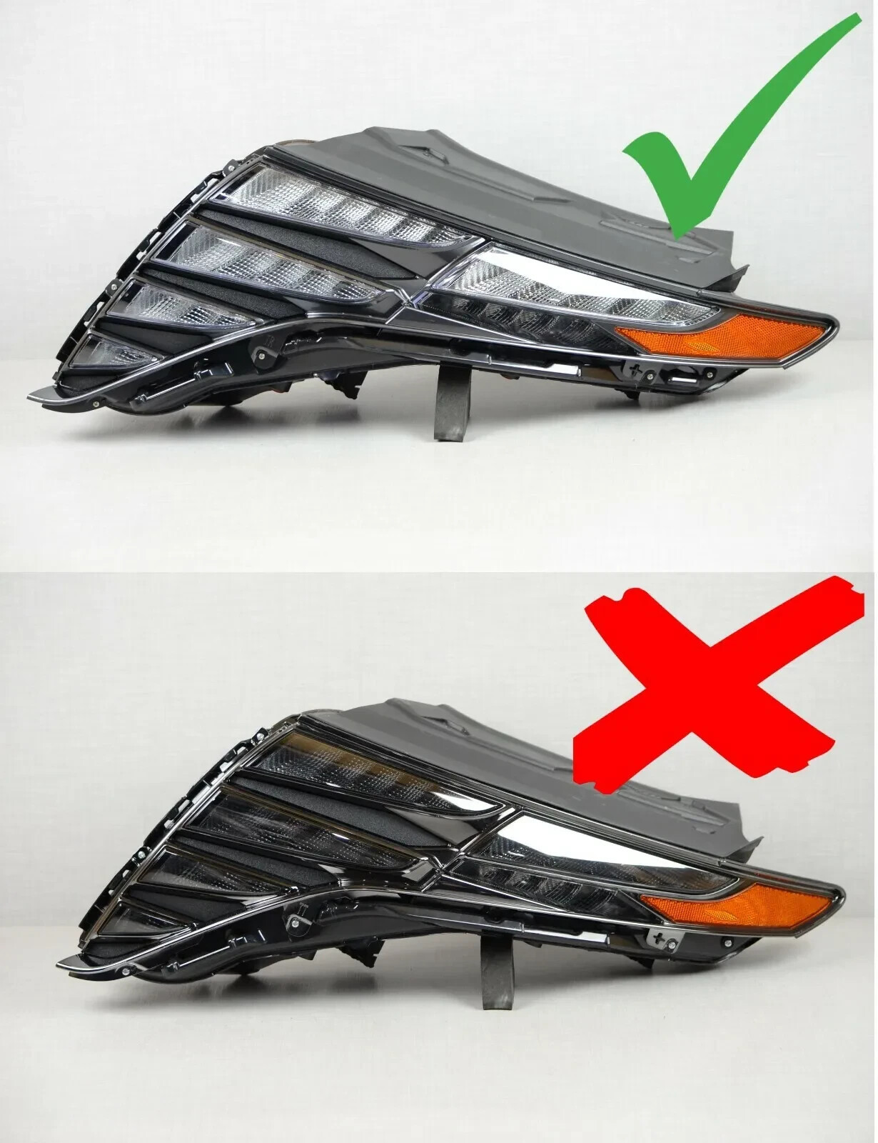 Notes: Chrome trim bracket has a small crack, see photo #4. (will not affect the headlight)