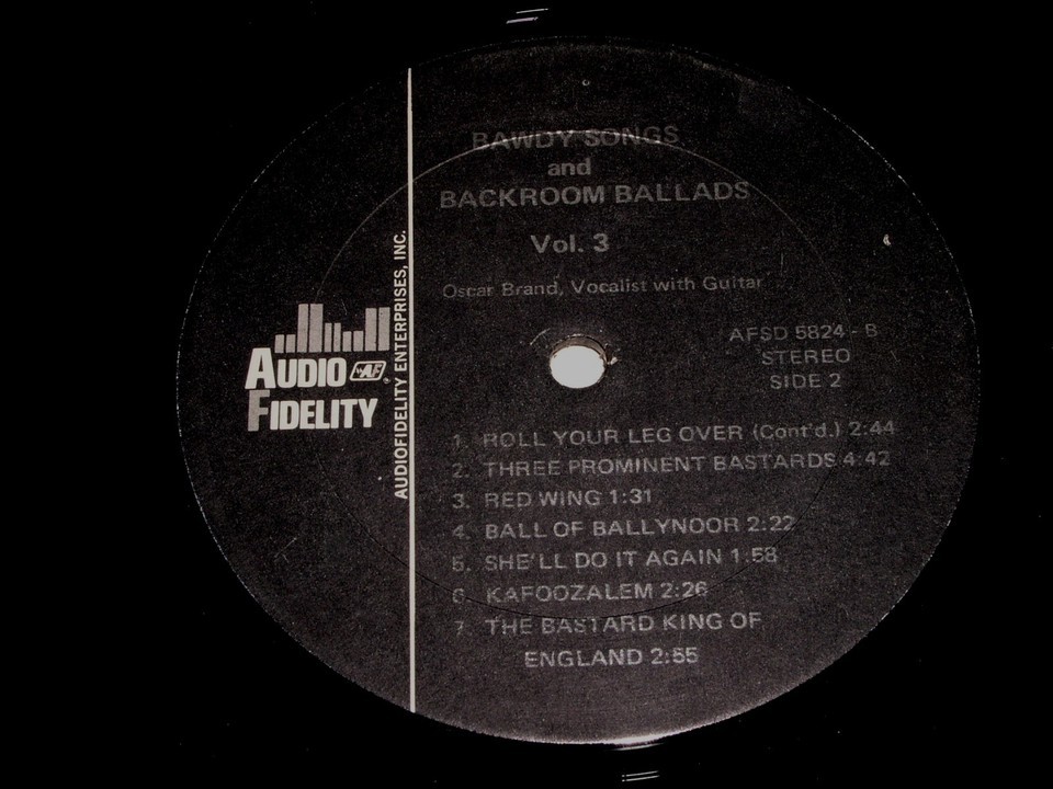 This is a vintage record album entitled, "Oscar Brand, Bawdy Songs and Backroom Ballads". Record label Audio Fidelity AFSD 5824 (Stereo).