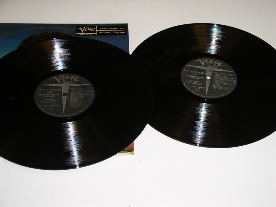 This is a vintage record album entitled, "Ella Fitzgerald Sings The Rodgers and Hart Song Book". 2 lp's. Record label Verve MGV-4002-2 (Mono).