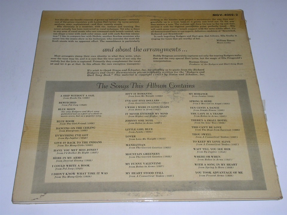 Ella Fitzgerald Rodgers Hart Song Book Record Album Vinyl LP Verve 4002 VG/VG+