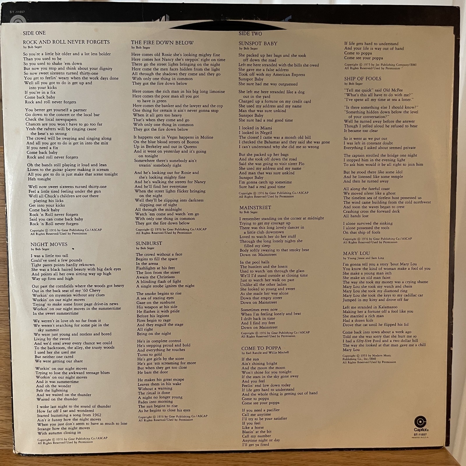 Bob Seger Night Moves Vinyl LP Capitol ST-11557 VG++ Mainstreet