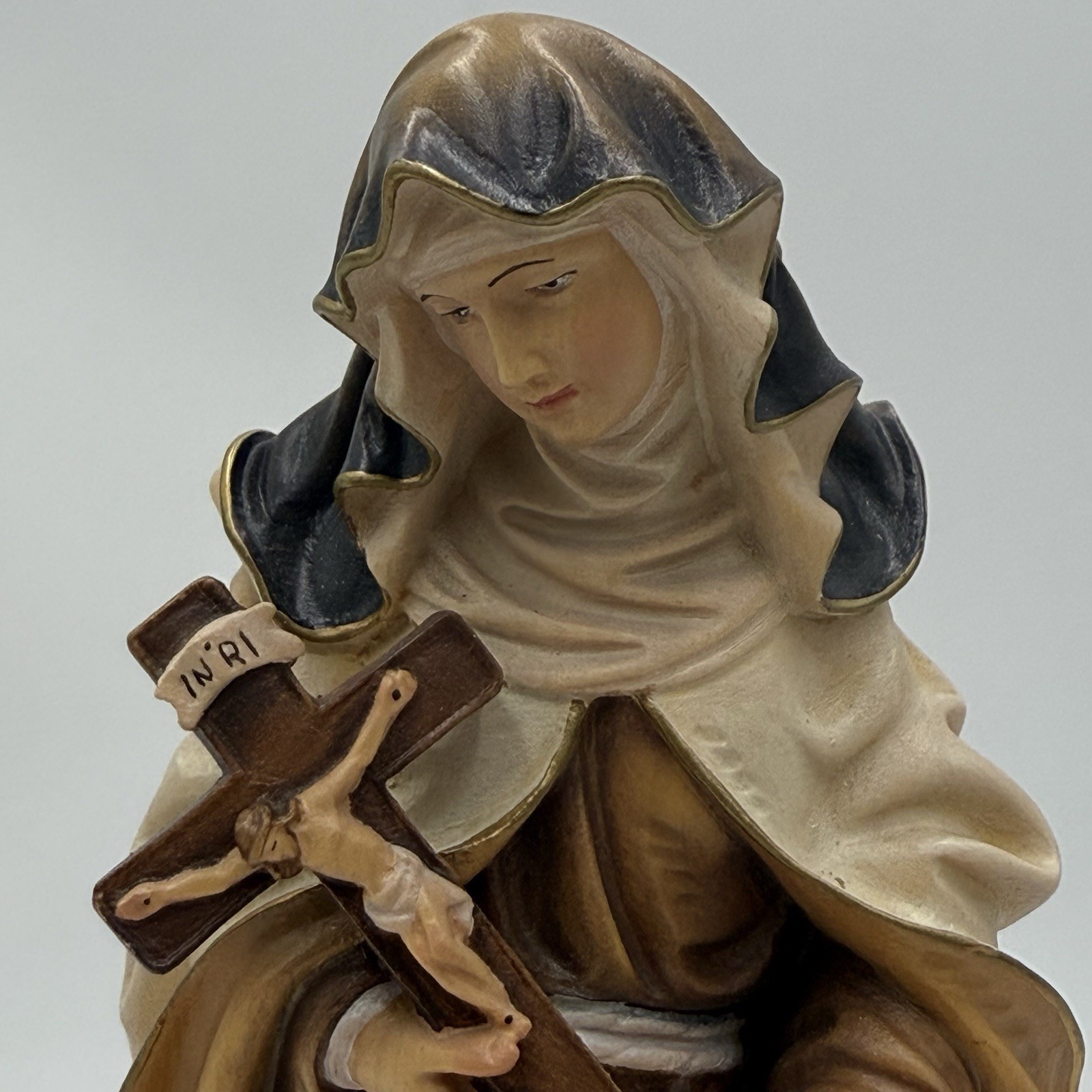 Folk Art Karl Demetz Wood Carved Saint Therese of Lisieux Figurine 12” Italy