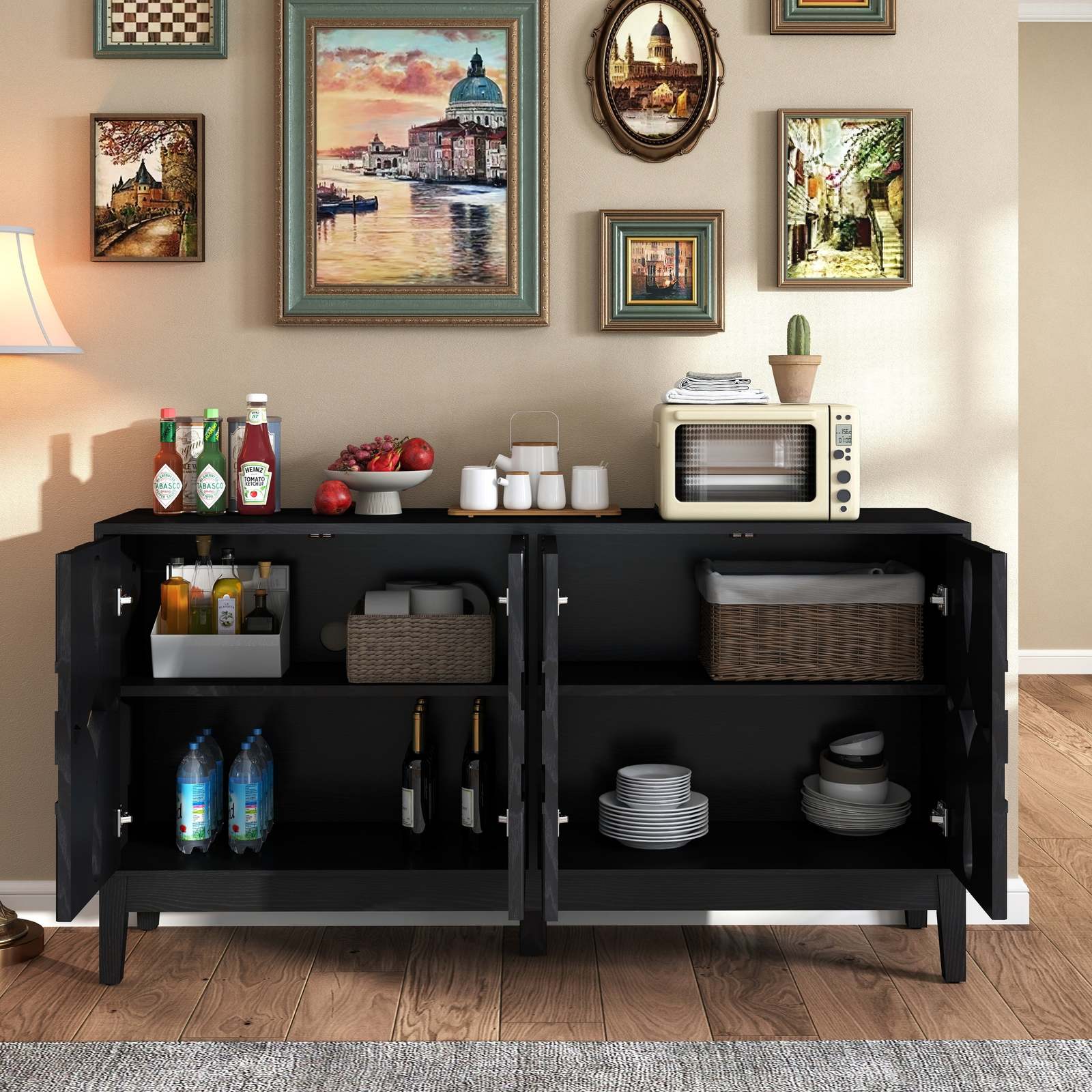 ?Versatile Sideboard?- Whether your house is modern, vintage, rustic, ornate, farmhouse or bohemian, it will fit in nicely. The openwork carved shape creates a sense of elegance and serenity, and with all the craftsmanship and detailing, it can bring a refreshed look to a drab corner.