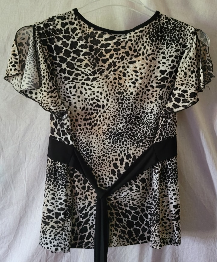 Women's AGB Leopard Print Pullover Size XL Tie Back Waist Lightweight Work