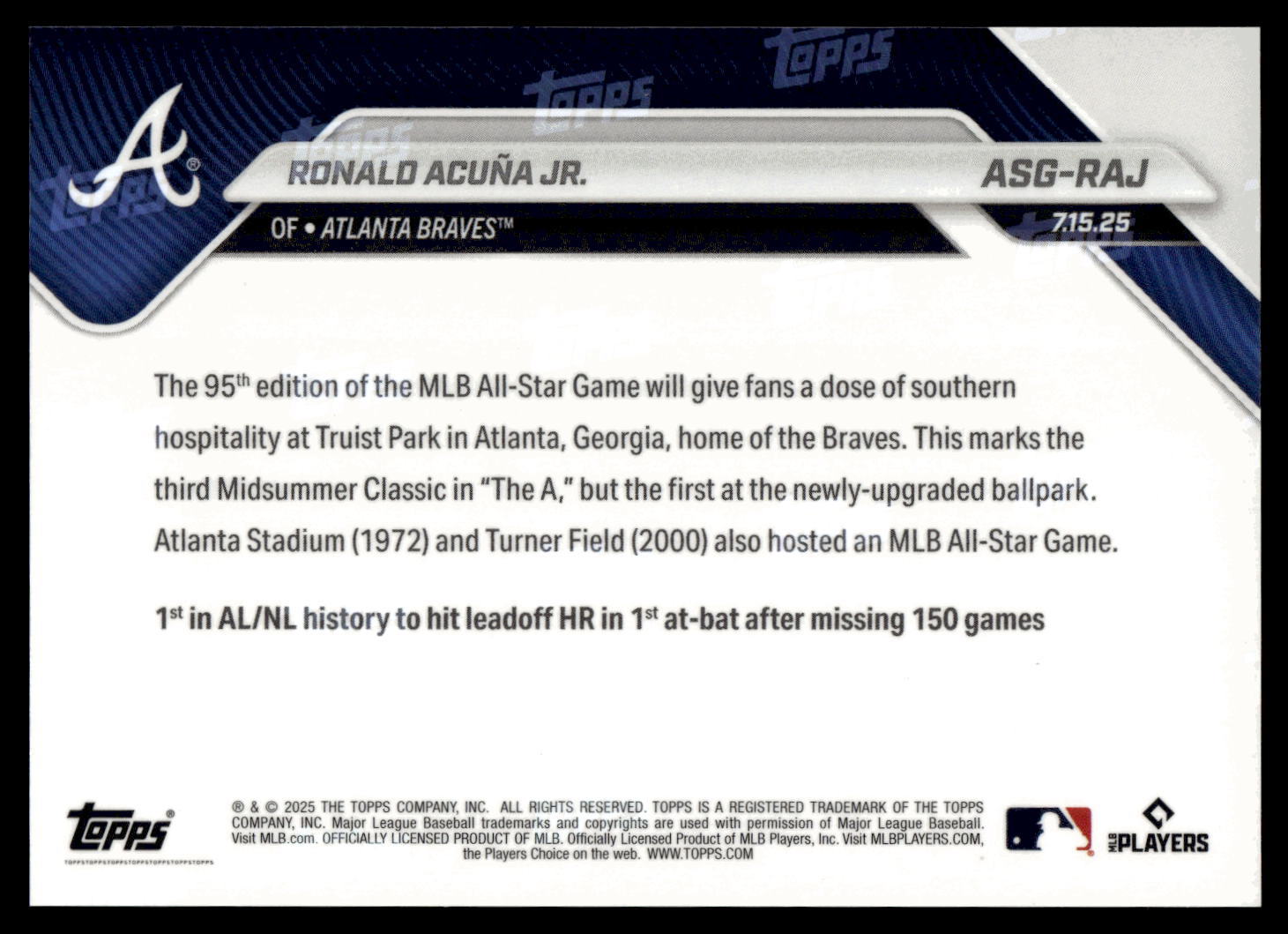 Ronald Acuna Jr Limited Edition 2025 MLB Allstar Game National v American ASG-RA