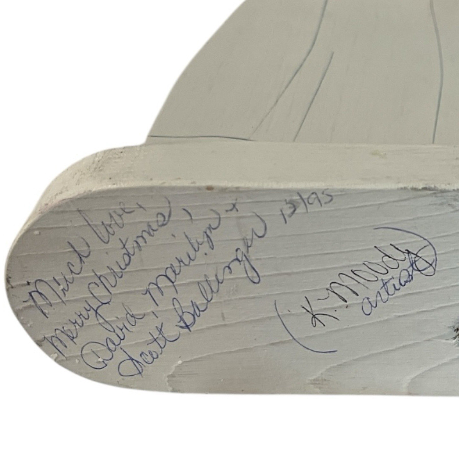 Perfect as a shelf sitter or tabletop display, this piece adds a warm, country-inspired touch to holiday decor or year-round displays. An inscription on the bottom reads: ?Much love, Merry Christmas, David, Marilyn Scott Ballinger 12/95.?