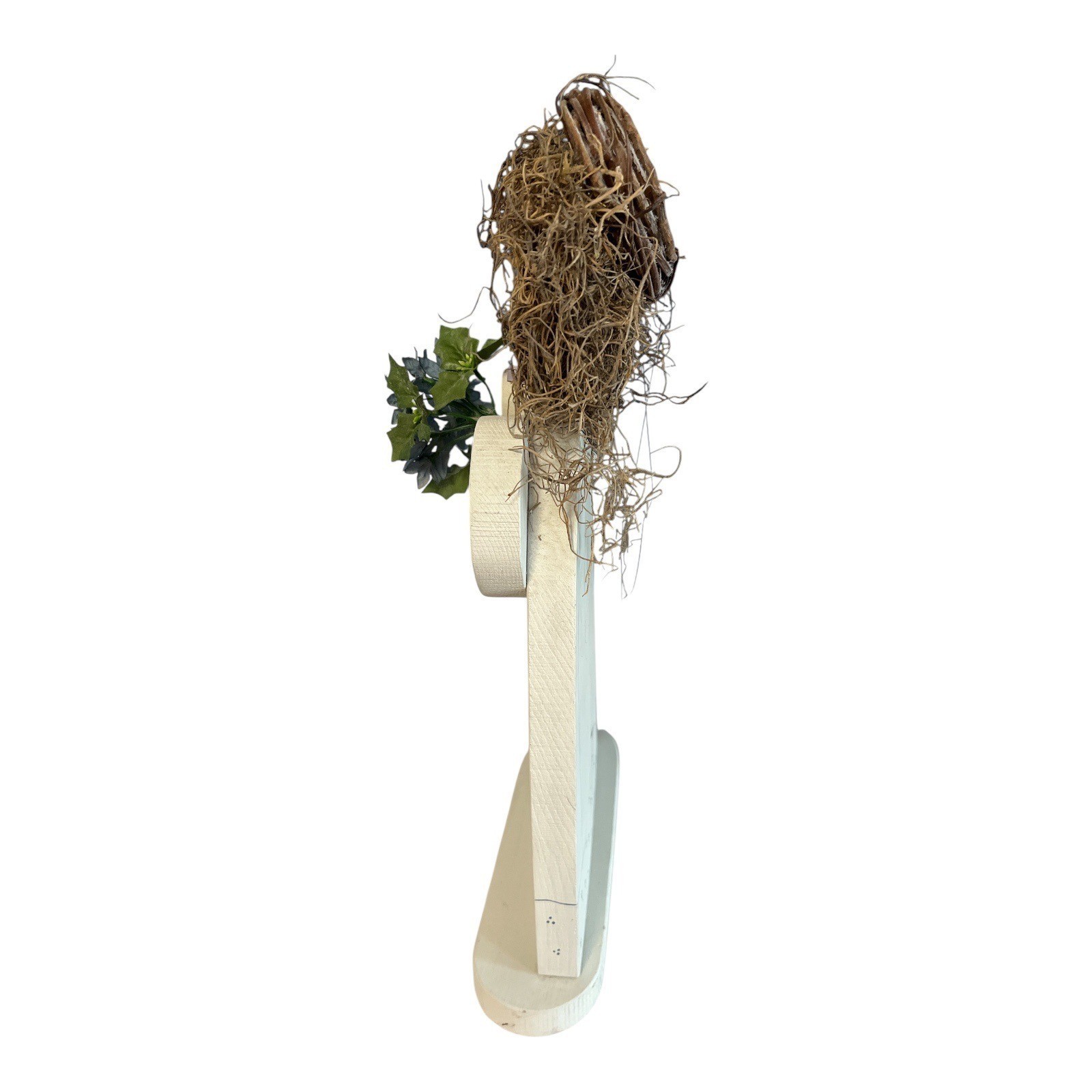* Material: Wood, grapevine, Spanish moss, faux flowers, ribbon