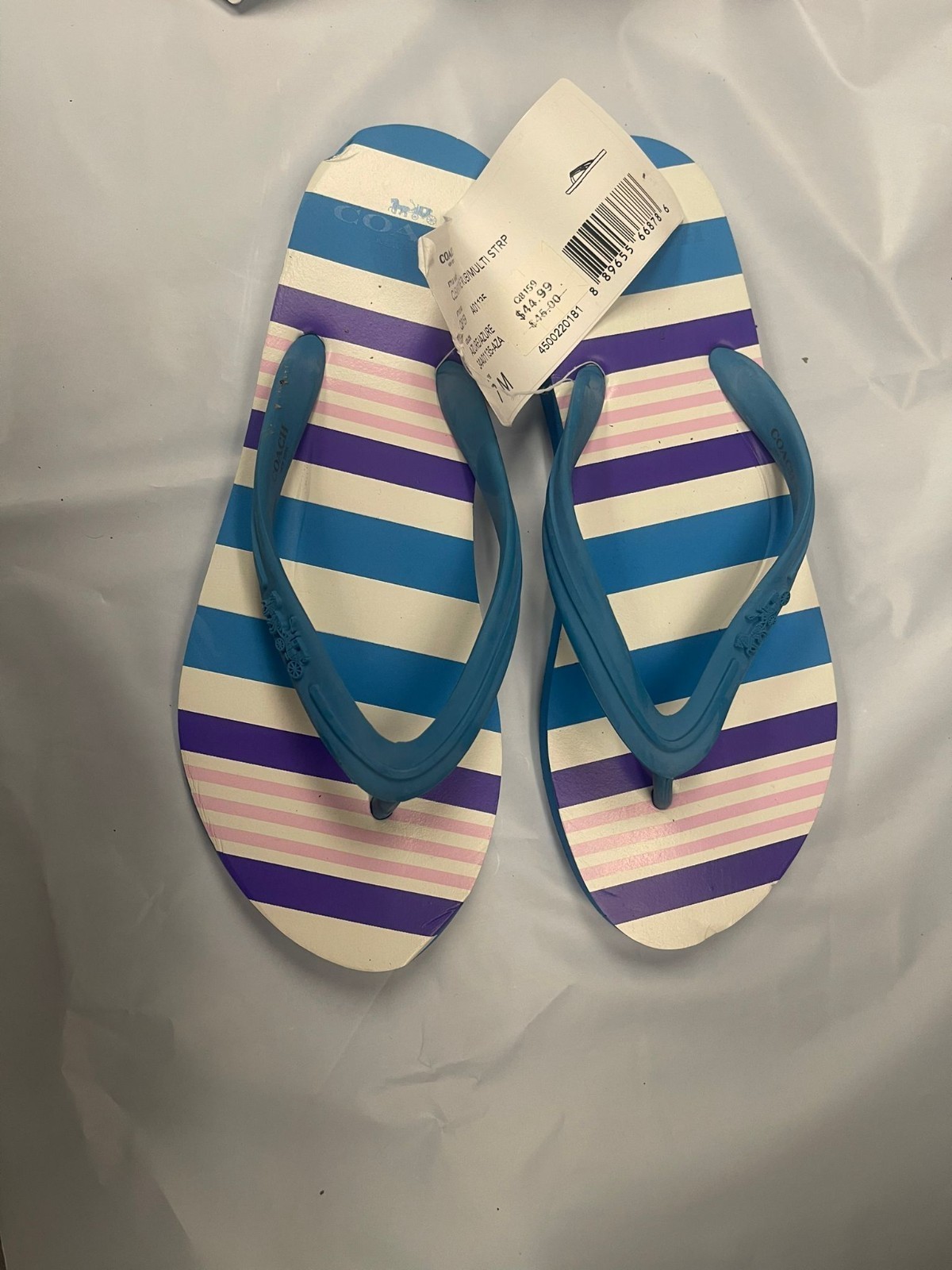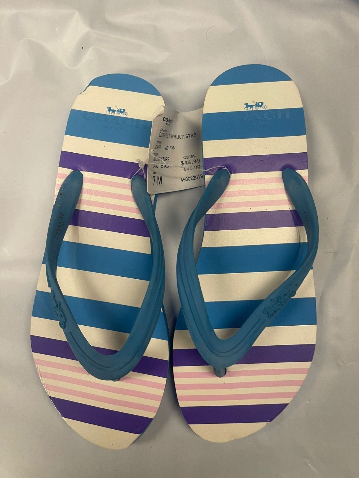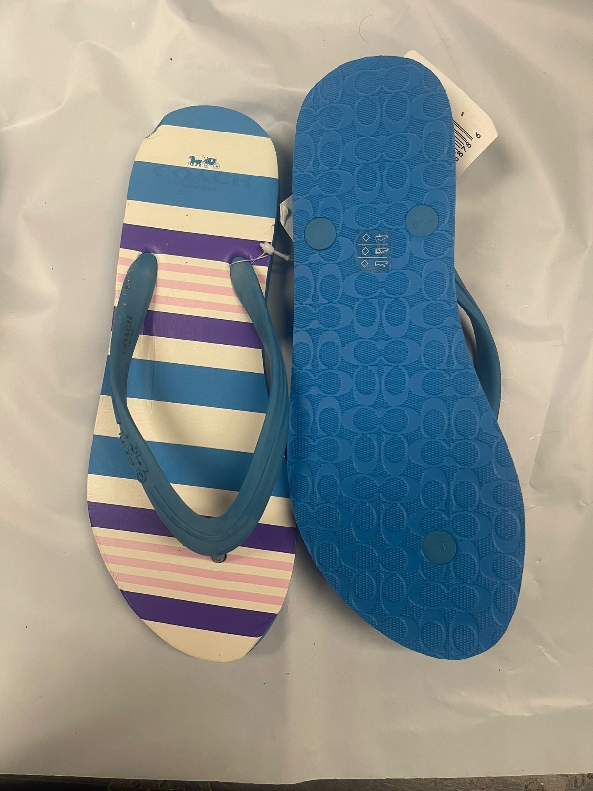 Coach Clementine Rubber Multi Stripe Flip Flops Women's Size 7 Azure Blue NWT