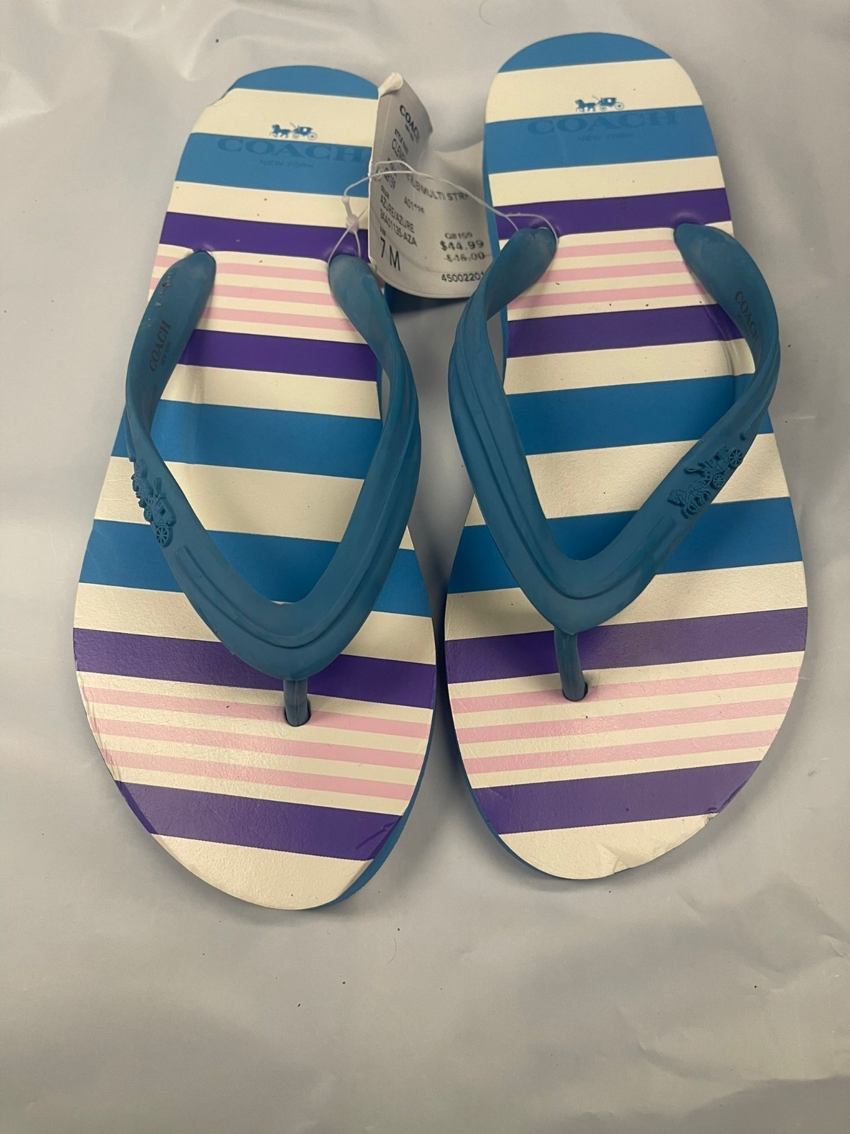 Coach Clementine Rubber Multi Stripe Flip Flops Women's Size 7 Azure Blue NWT