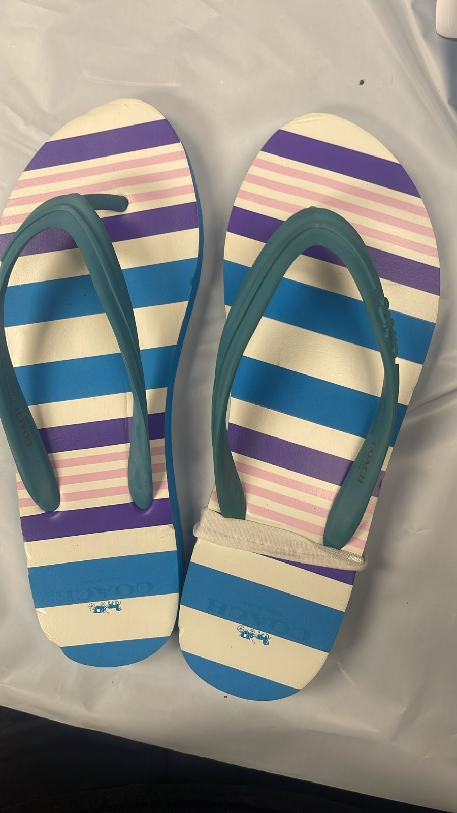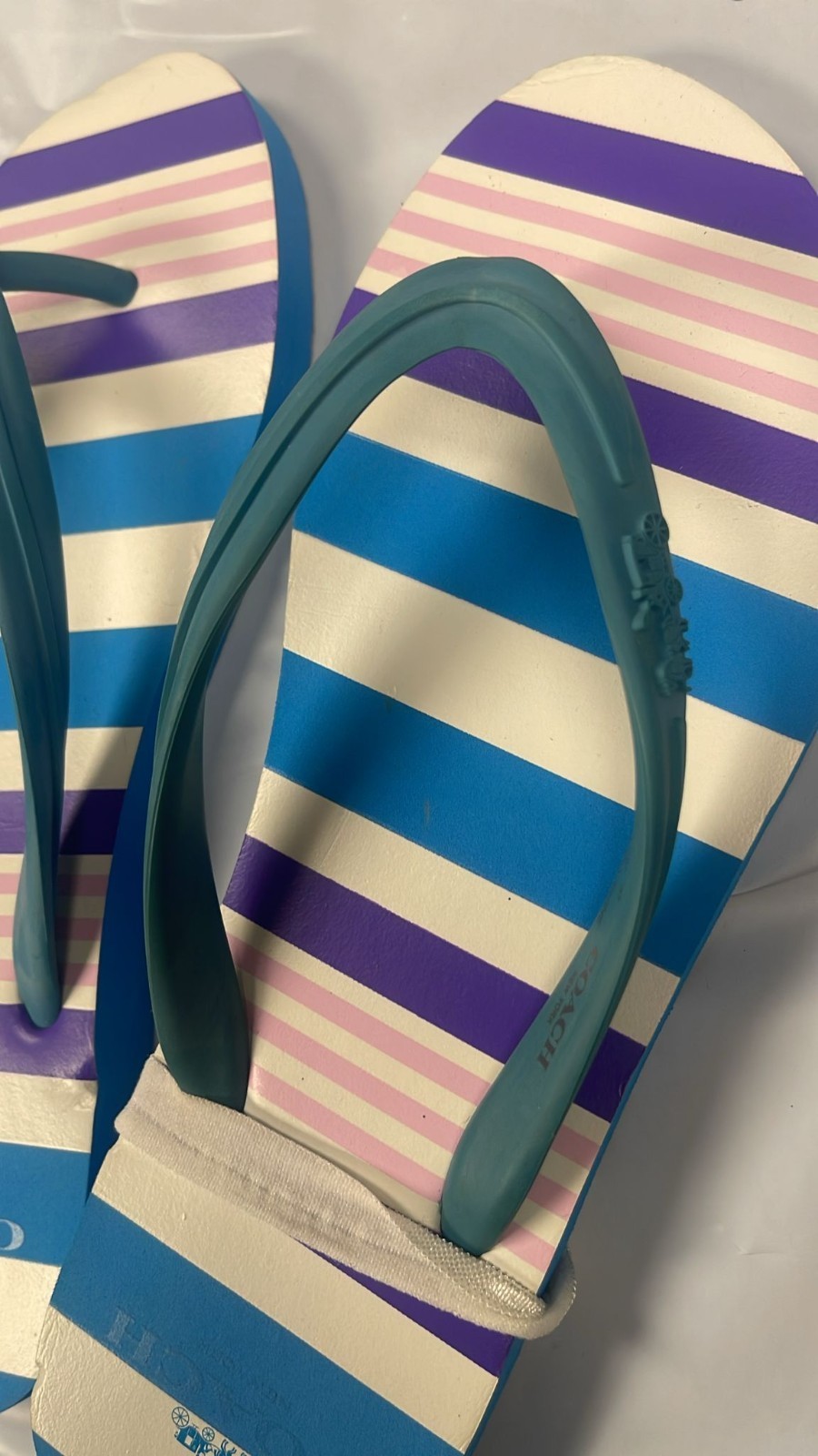 Coach Clementine Rubber Multi Stripe Flip Flops Women's Size 8 Azure Blue NWT